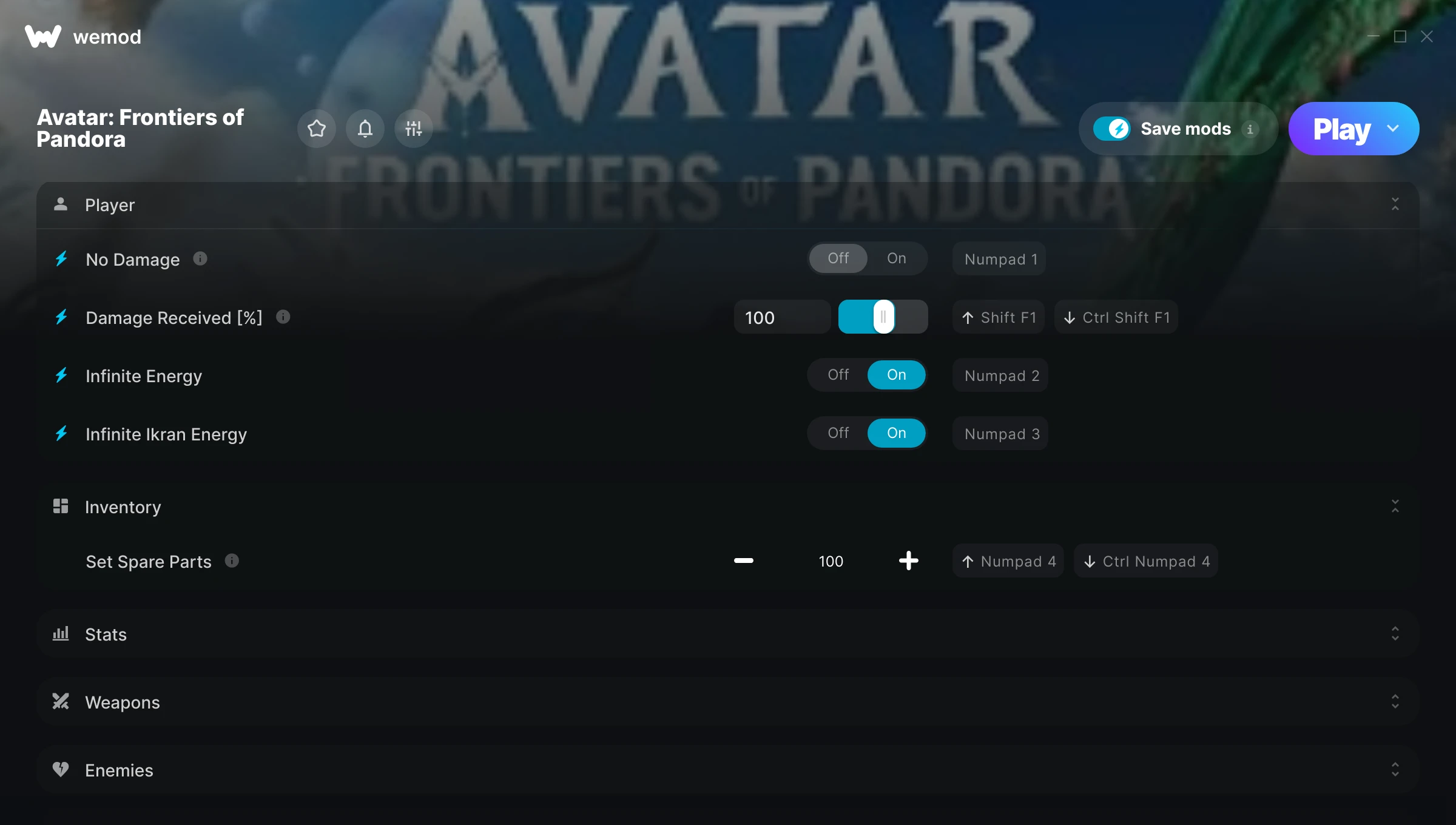 WeMod Needs to be set to run in the main menu and not before or the game will crash. Otherwise fantastic.