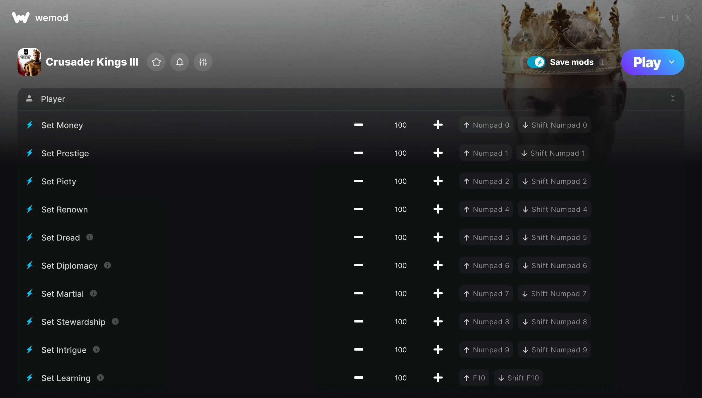 Thank you for the in-game cheats! As I was playing I thought to myself what's missing and a light bulb rings over my head. Why not add a simple raise 100k troops or something similar? Just some food for thought IF you wanna add it for the people that want to get the Domination vibe. Thanks again!