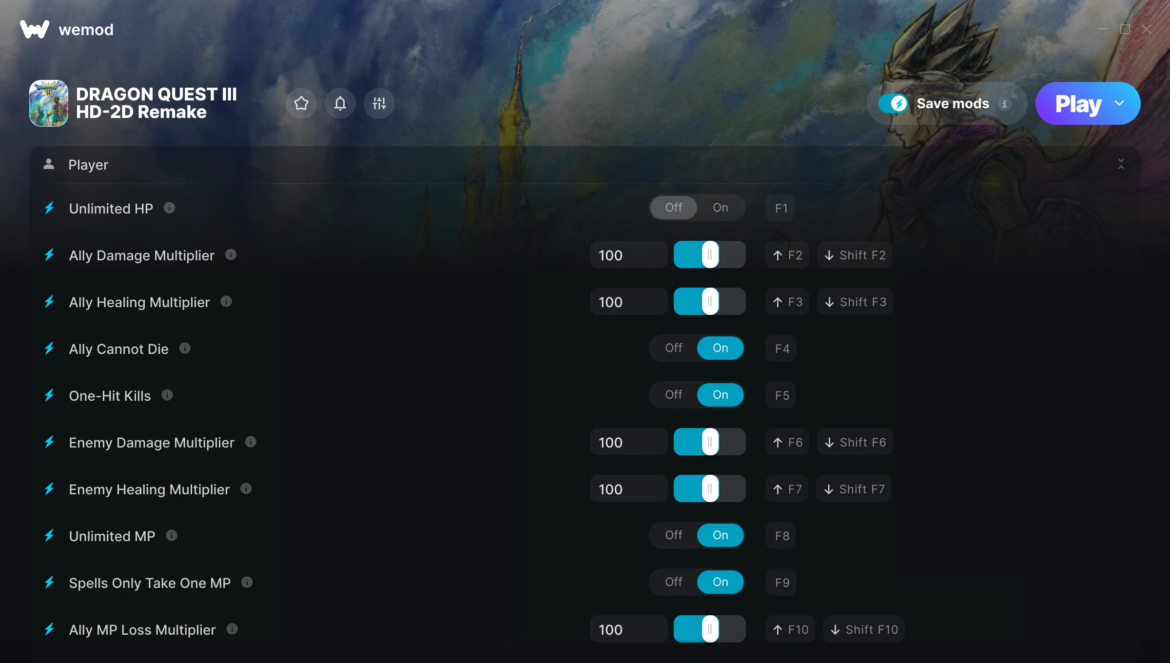 How do I use the cheats in DRAGON QUEST III HD-2D Remake?WeMod will safely display all of the games on your PC. Open a game from the list and simply press play. After the game loads and once you’re in-game, you can start enabling different cheats!Will this work with my game version?WeMod uses advanced technology to detect the game version you’re running and will let you know if it’s supported. If it’s not, you will still have the option of giving it a try or requesting an update!