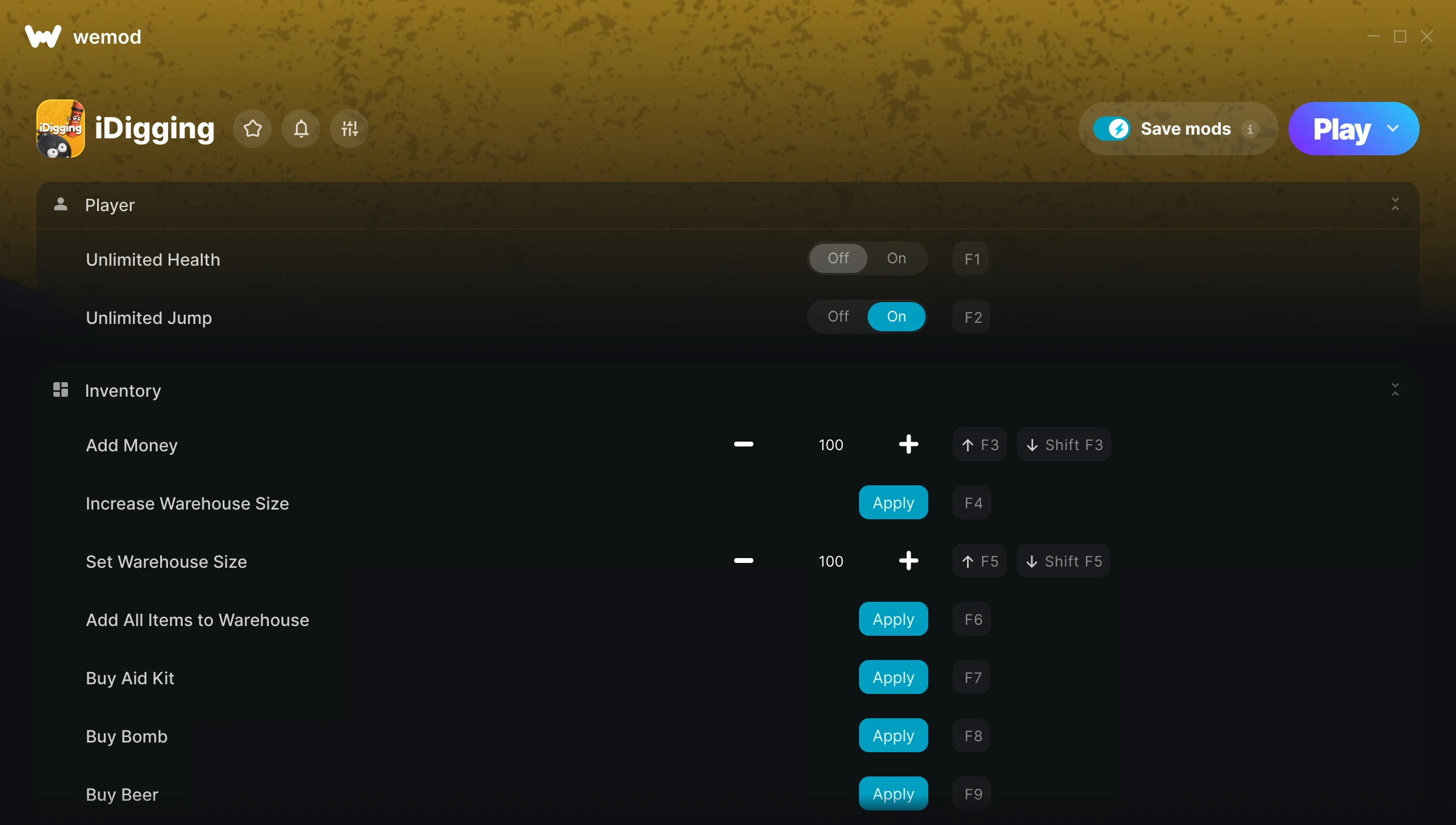 85MB Windows ...or visit us on your PC to download the app Get Unlimited Health, Unlimited Jump & 30 other mods for iDigging with WeMod