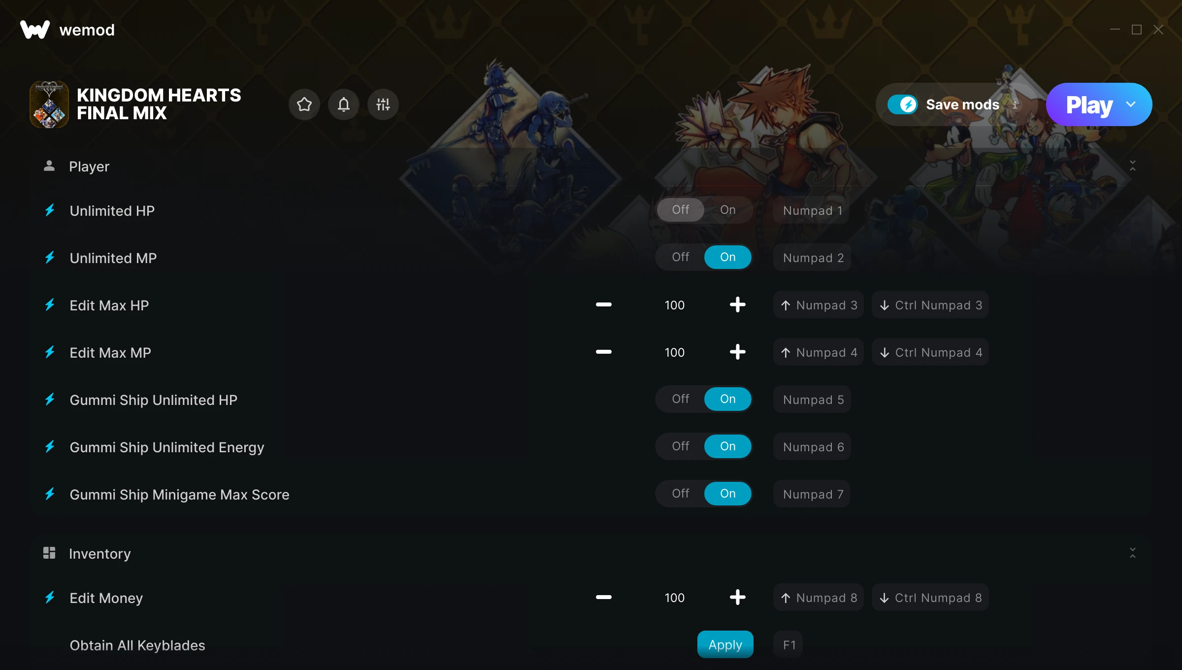WeMod ran flawlessly with Kingdom Hearts, and I really like the buttons set to the numberpad by default, it's my preference.