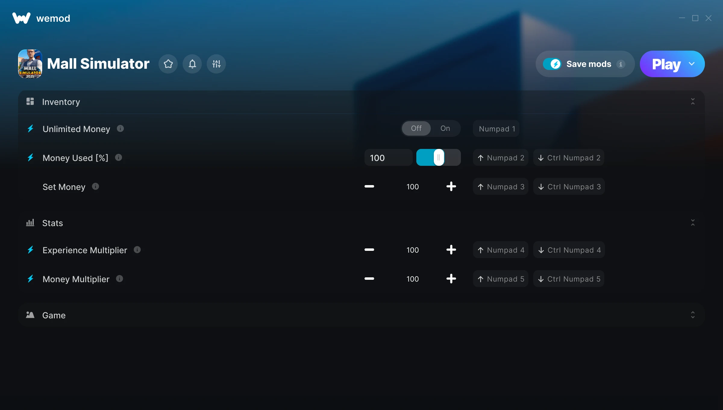 How do I use the cheats in Mall Simulator?WeMod will safely display all of the games on your PC. Open a game from the list and simply press play. After the game loads and once you’re in-game, you can start enabling different cheats!Will this work with my game version?WeMod uses advanced technology to detect the game version you’re running and will let you know if it’s supported. If it’s not, you will still have the option of giving it a try or requesting an update!