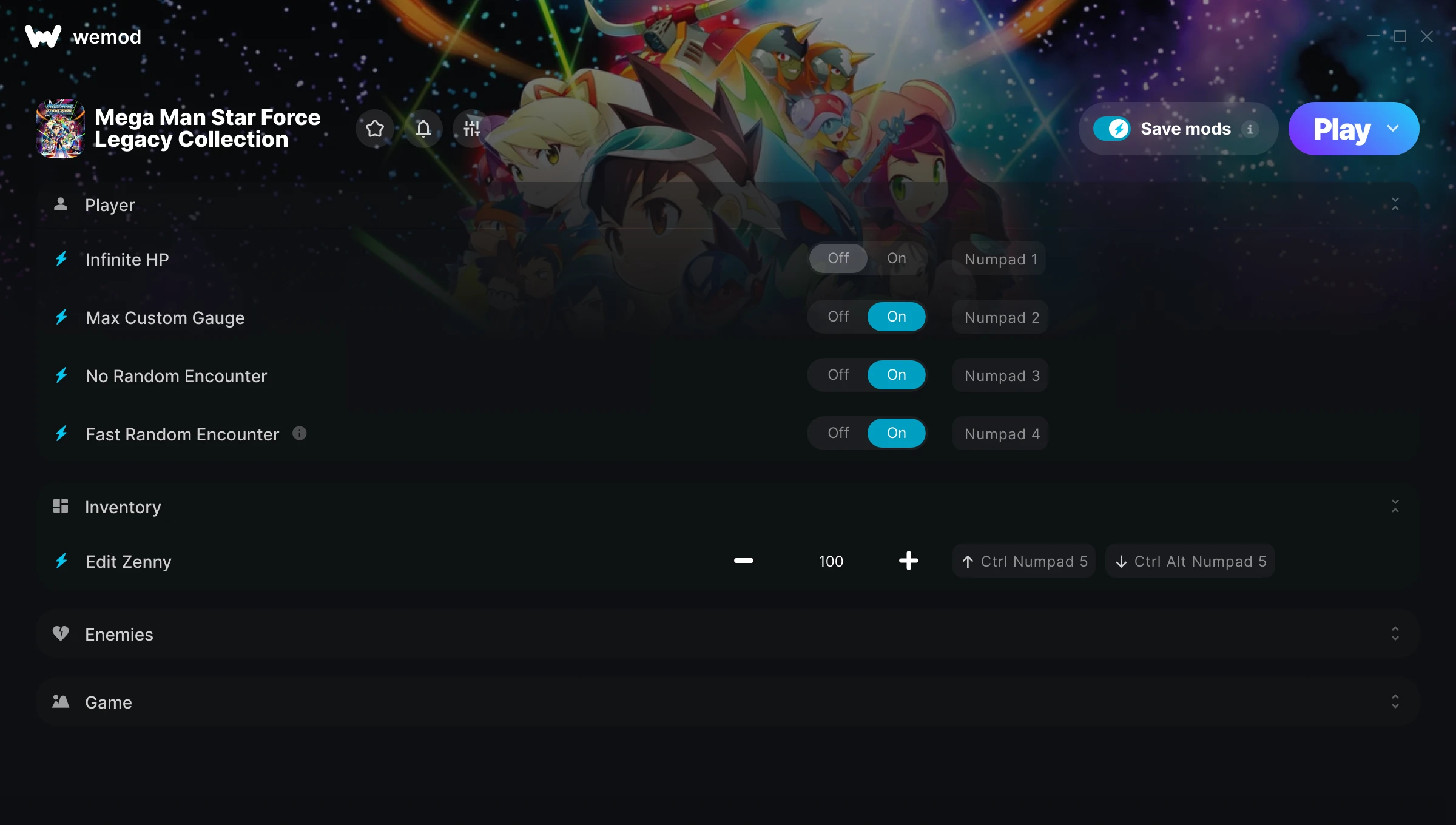 How do I use the cheats in Mega Man Star Force Legacy Collection?WeMod will safely display all of the games on your PC. Open a game from the list and simply press play. After the game loads and once you’re in-game, you can start enabling different cheats!Will this work with my game version?WeMod uses advanced technology to detect the game version you’re running and will let you know if it’s supported. If it’s not, you will still have the option of giving it a try or requesting an update!