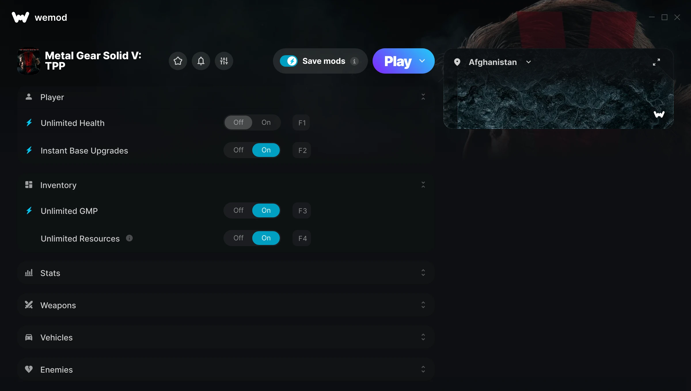 Hey guys, i just used the Wemod for MGS Phantom Pain...LOVE the ability to unlock and research all the weapon upgrades right away! Thanks so much! :)