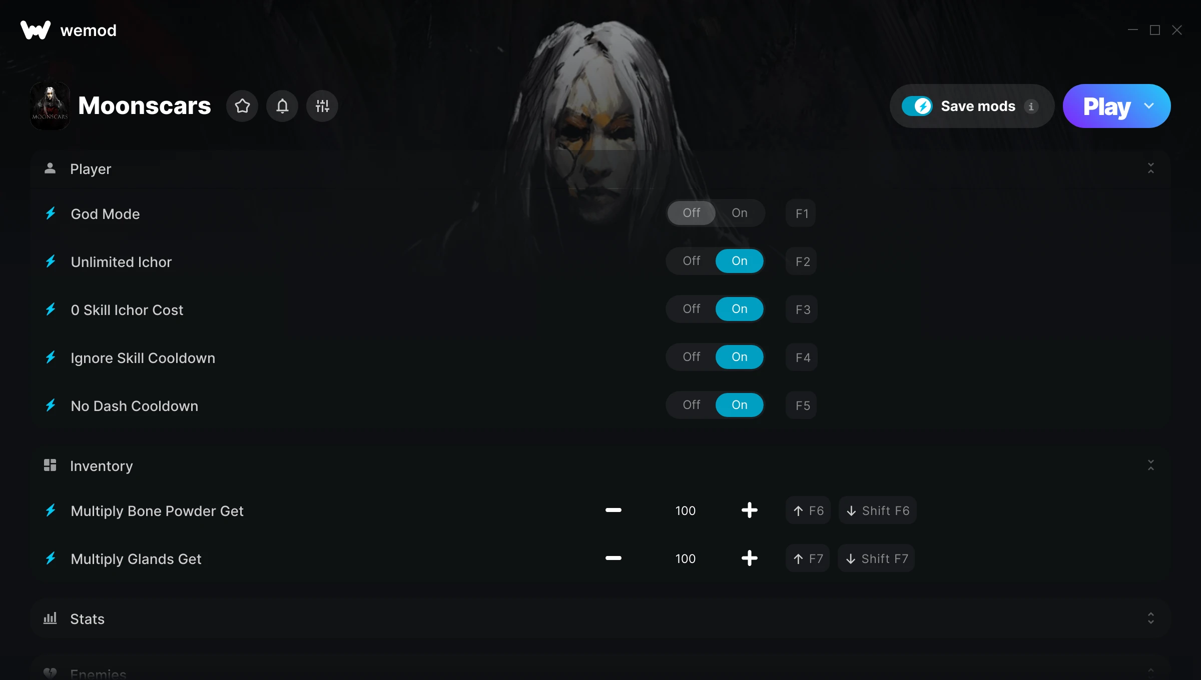 How do I use the cheats in Moonscars?WeMod will safely display all of the games on your PC. Open a game from the list and simply press play. After the game loads and once you’re in-game, you can start enabling different cheats!Will this work with my game version?WeMod uses advanced technology to detect the game version you’re running and will let you know if it’s supported. If it’s not, you will still have the option of giving it a try or requesting an update!