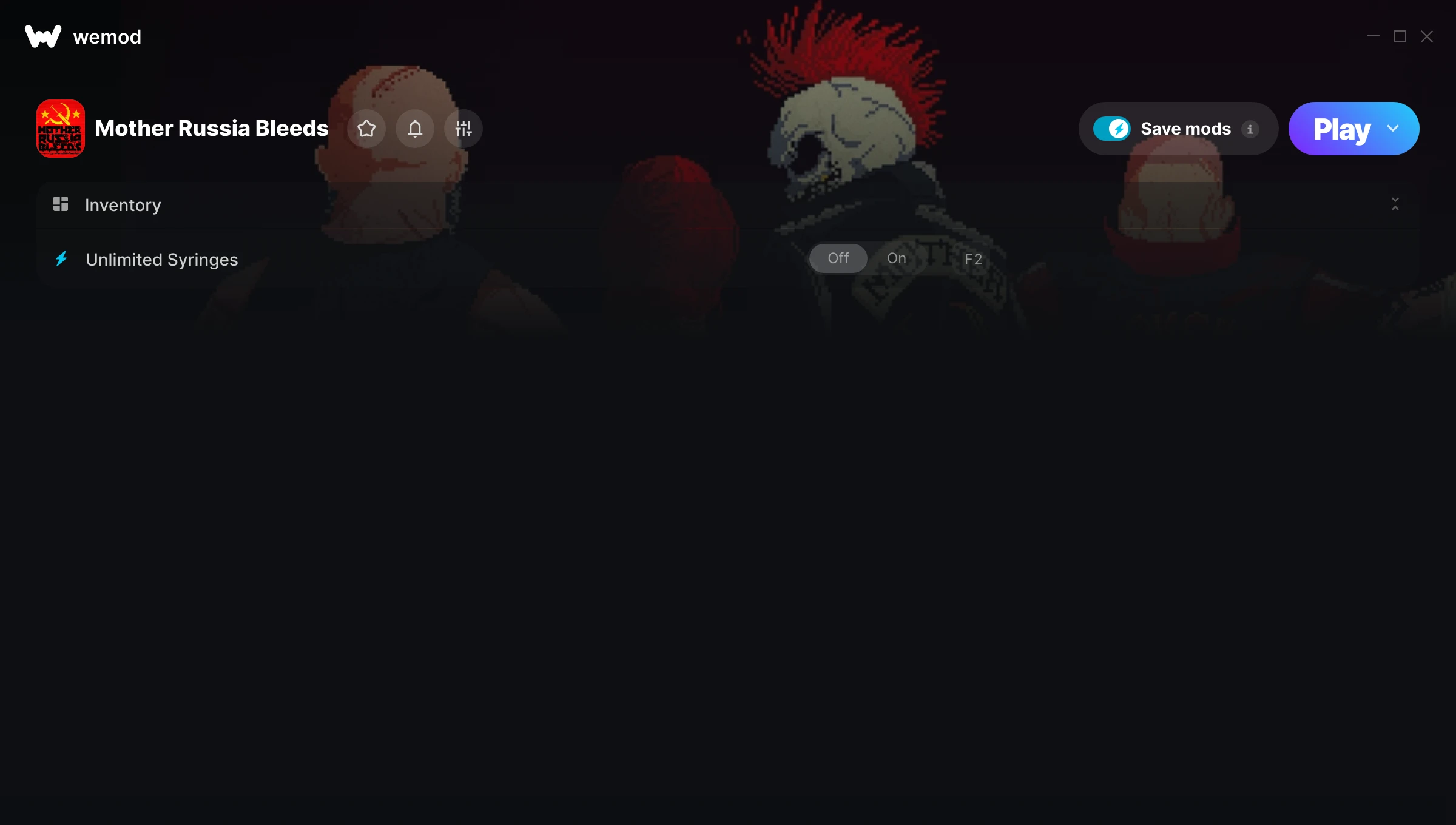 How do I use the cheats in Mother Russia Bleeds?WeMod will safely display all of the games on your PC. Open a game from the list and simply press play. After the game loads and once you’re in-game, you can start enabling different cheats!Will this work with my game version?WeMod uses advanced technology to detect the game version you’re running and will let you know if it’s supported. If it’s not, you will still have the option of giving it a try or requesting an update!