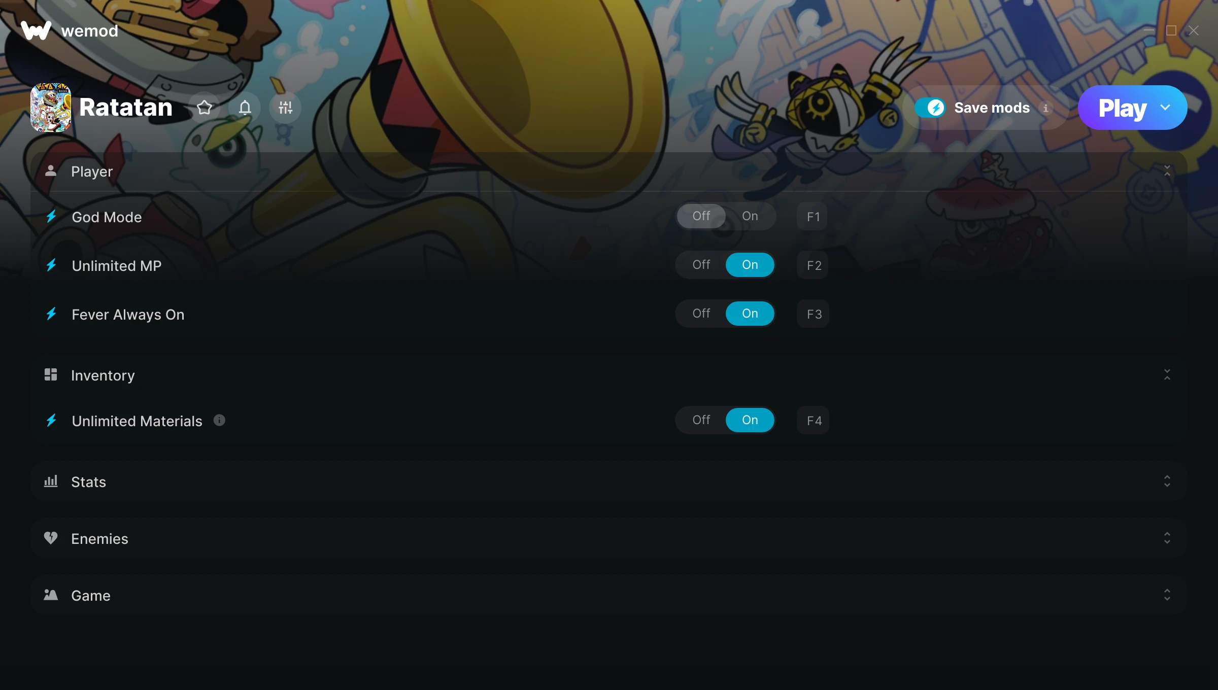How do I use the cheats in Ratatan?WeMod will safely display all of the games on your PC. Open a game from the list and simply press play. After the game loads and once you’re in-game, you can start enabling different cheats!Will this work with my game version?WeMod uses advanced technology to detect the game version you’re running and will let you know if it’s supported. If it’s not, you will still have the option of giving it a try or requesting an update!
