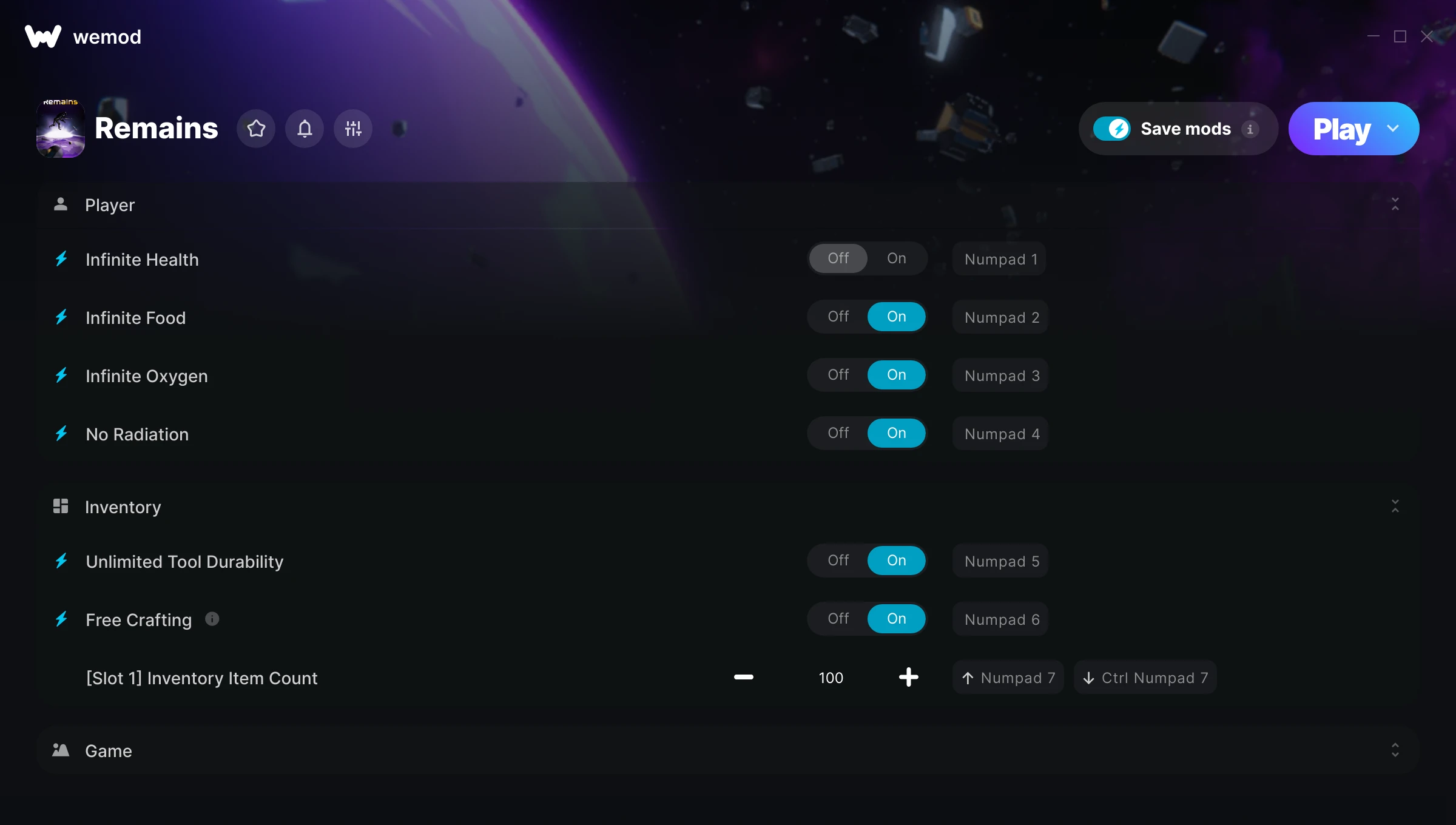 How do I use the cheats in Remains?WeMod will safely display all of the games on your PC. Open a game from the list and simply press play. After the game loads and once you’re in-game, you can start enabling different cheats!Will this work with my game version?WeMod uses advanced technology to detect the game version you’re running and will let you know if it’s supported. If it’s not, you will still have the option of giving it a try or requesting an update!