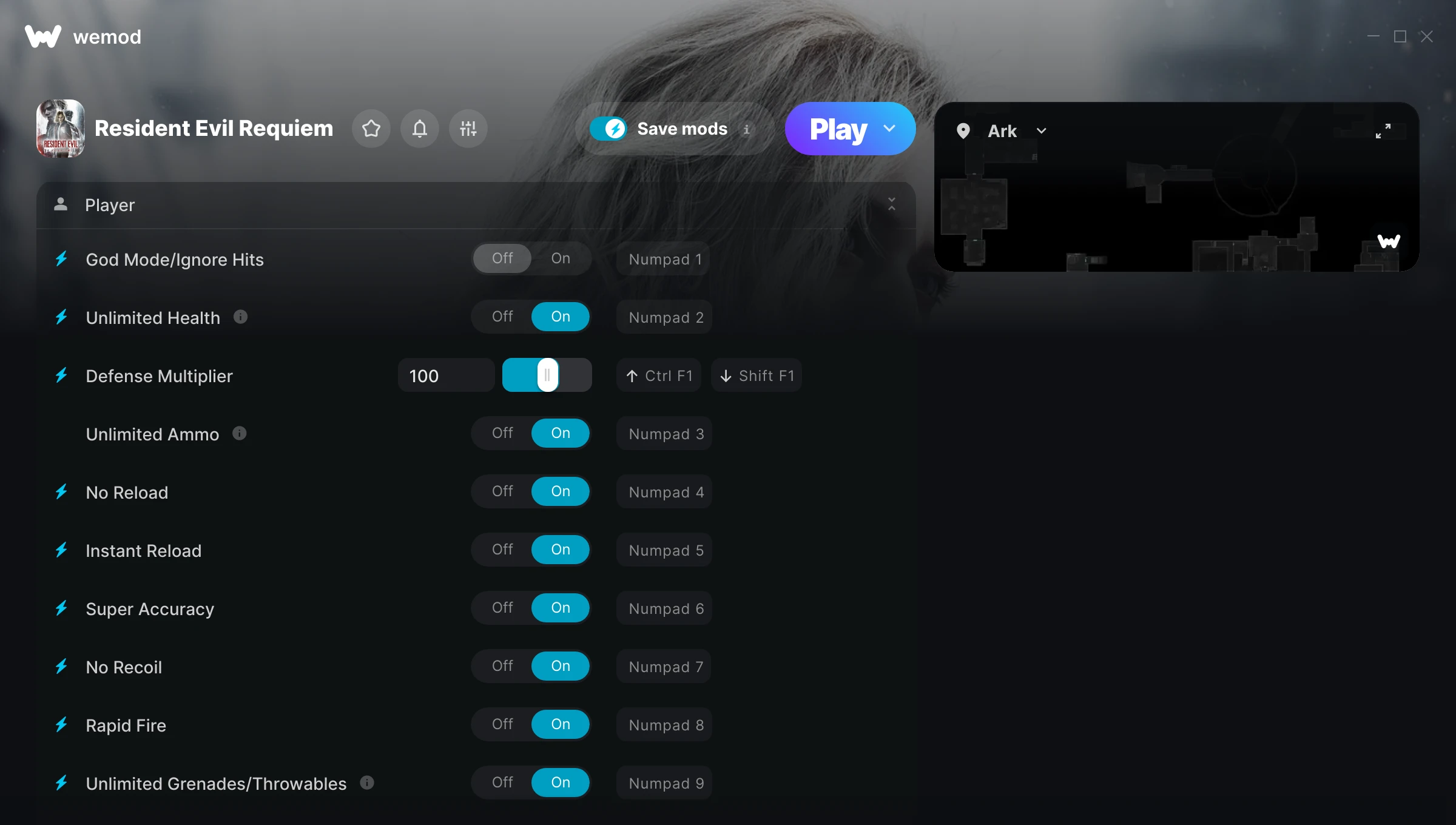 How do I use the cheats in Resident Evil Requiem?WeMod will safely display all of the games on your PC. Open a game from the list and simply press play. After the game loads and once you’re in-game, you can start enabling different cheats!Will this work with my game version?WeMod uses advanced technology to detect the game version you’re running and will let you know if it’s supported. If it’s not, you will still have the option of giving it a try or requesting an update!