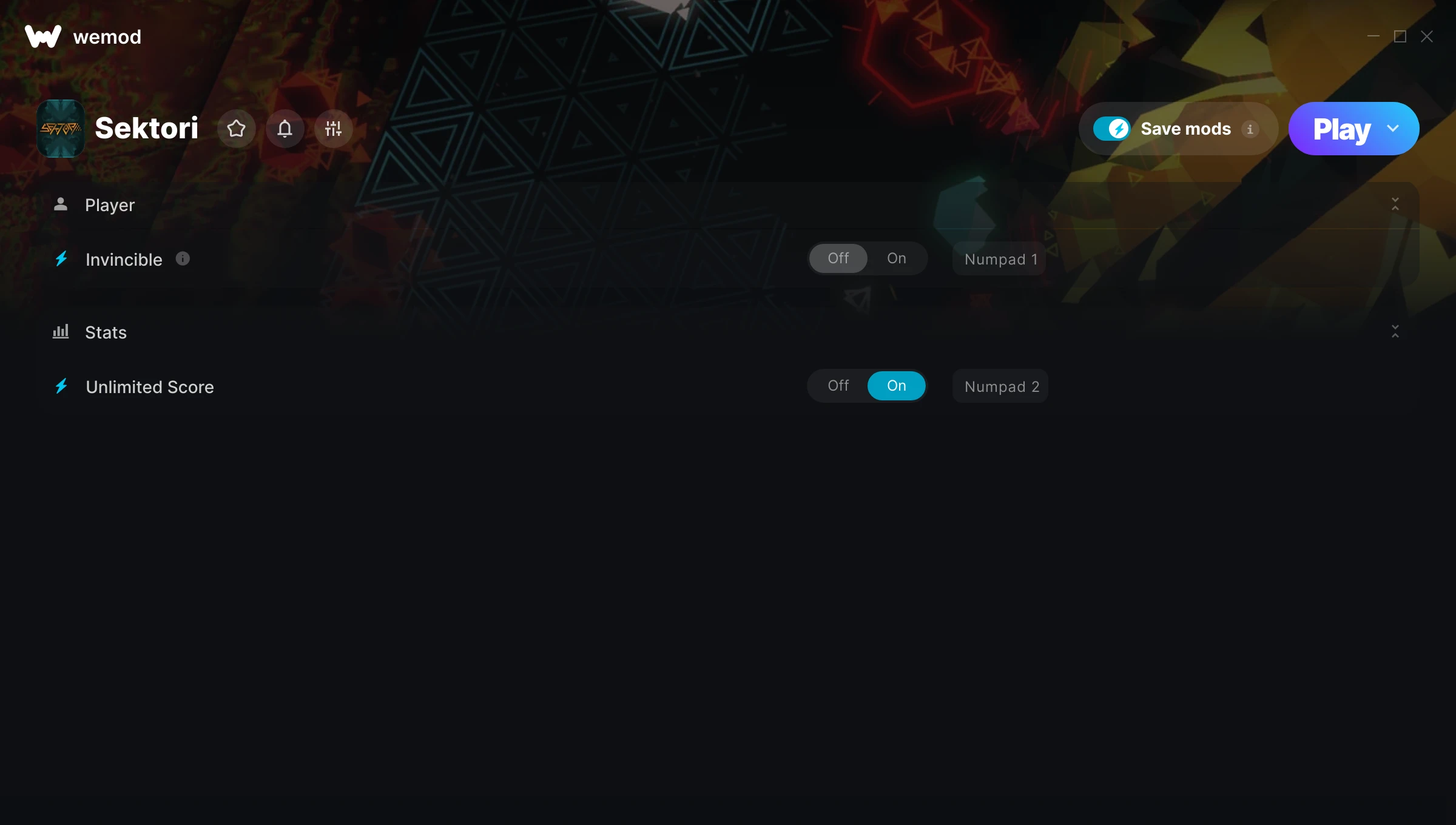 How do I use the cheats in Sektori?WeMod will safely display all of the games on your PC. Open a game from the list and simply press play. After the game loads and once you’re in-game, you can start enabling different cheats!Will this work with my game version?WeMod uses advanced technology to detect the game version you’re running and will let you know if it’s supported. If it’s not, you will still have the option of giving it a try or requesting an update!