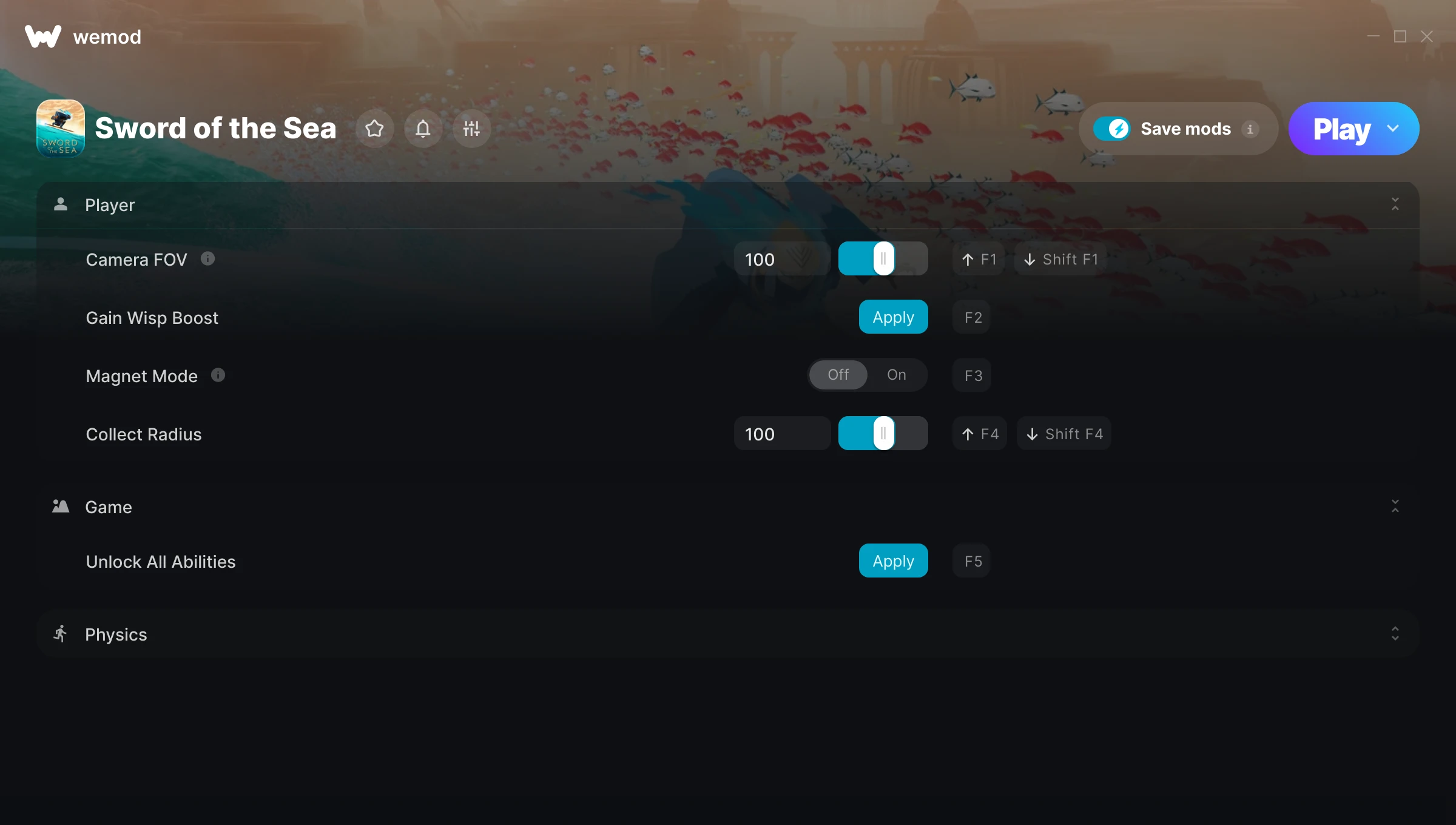 How do I use the cheats in Sword of the Sea?WeMod will safely display all of the games on your PC. Open a game from the list and simply press play. After the game loads and once you’re in-game, you can start enabling different cheats!Will this work with my game version?WeMod uses advanced technology to detect the game version you’re running and will let you know if it’s supported. If it’s not, you will still have the option of giving it a try or requesting an update!