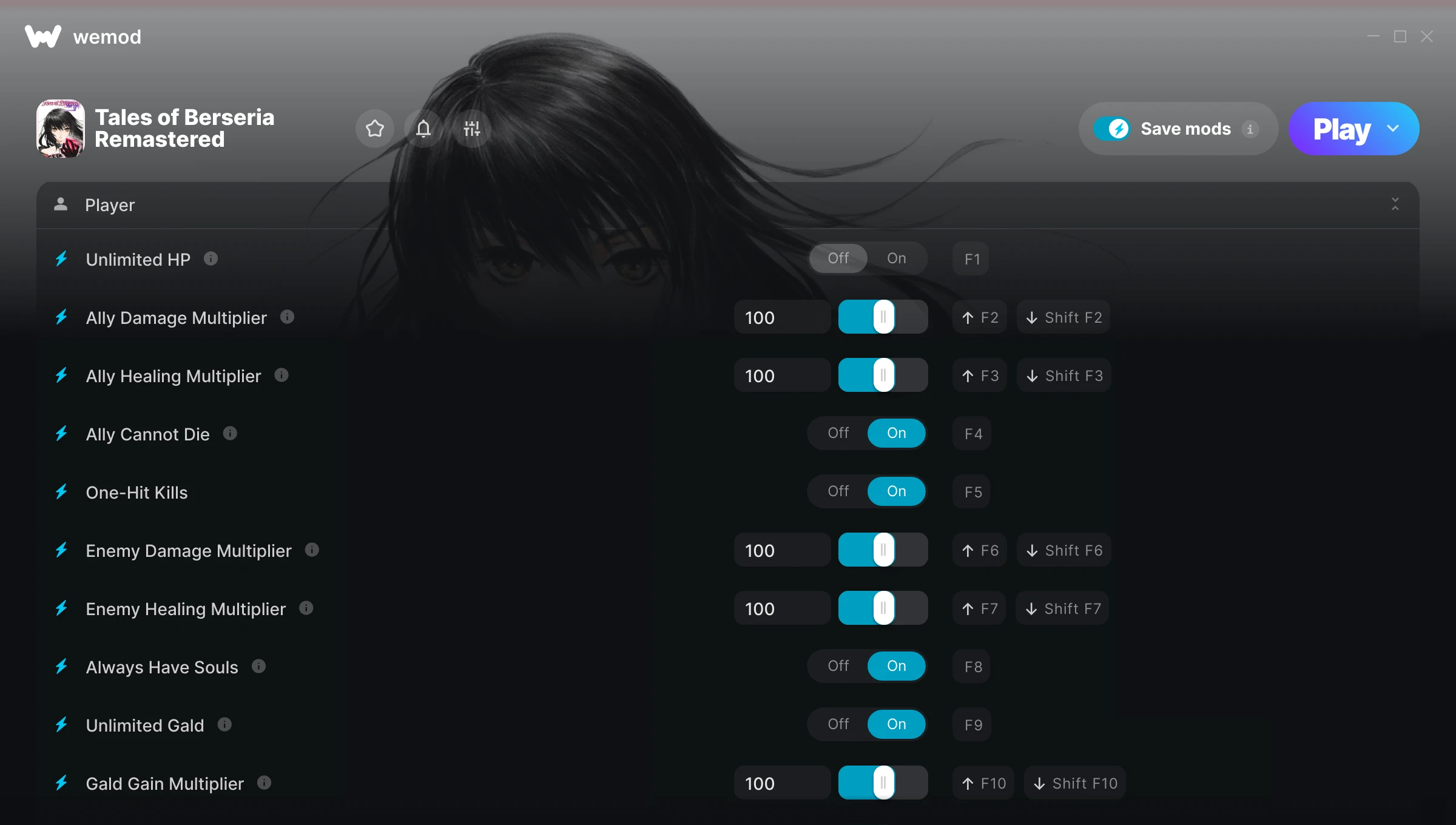 How do I use the cheats in Tales of Berseria Remastered?WeMod will safely display all of the games on your PC. Open a game from the list and simply press play. After the game loads and once you’re in-game, you can start enabling different cheats!Will this work with my game version?WeMod uses advanced technology to detect the game version you’re running and will let you know if it’s supported. If it’s not, you will still have the option of giving it a try or requesting an update!
