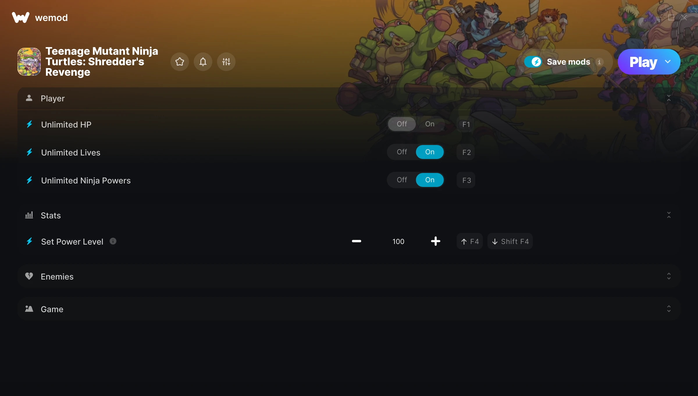 I love the Game Speed how you can turn it up and be invincible,Very Fun.Thank You Great job.I am going to buy TMNT Cowabunga Collection and I hope you guys have some mods for it also.Thanks again for making this game so much fun.