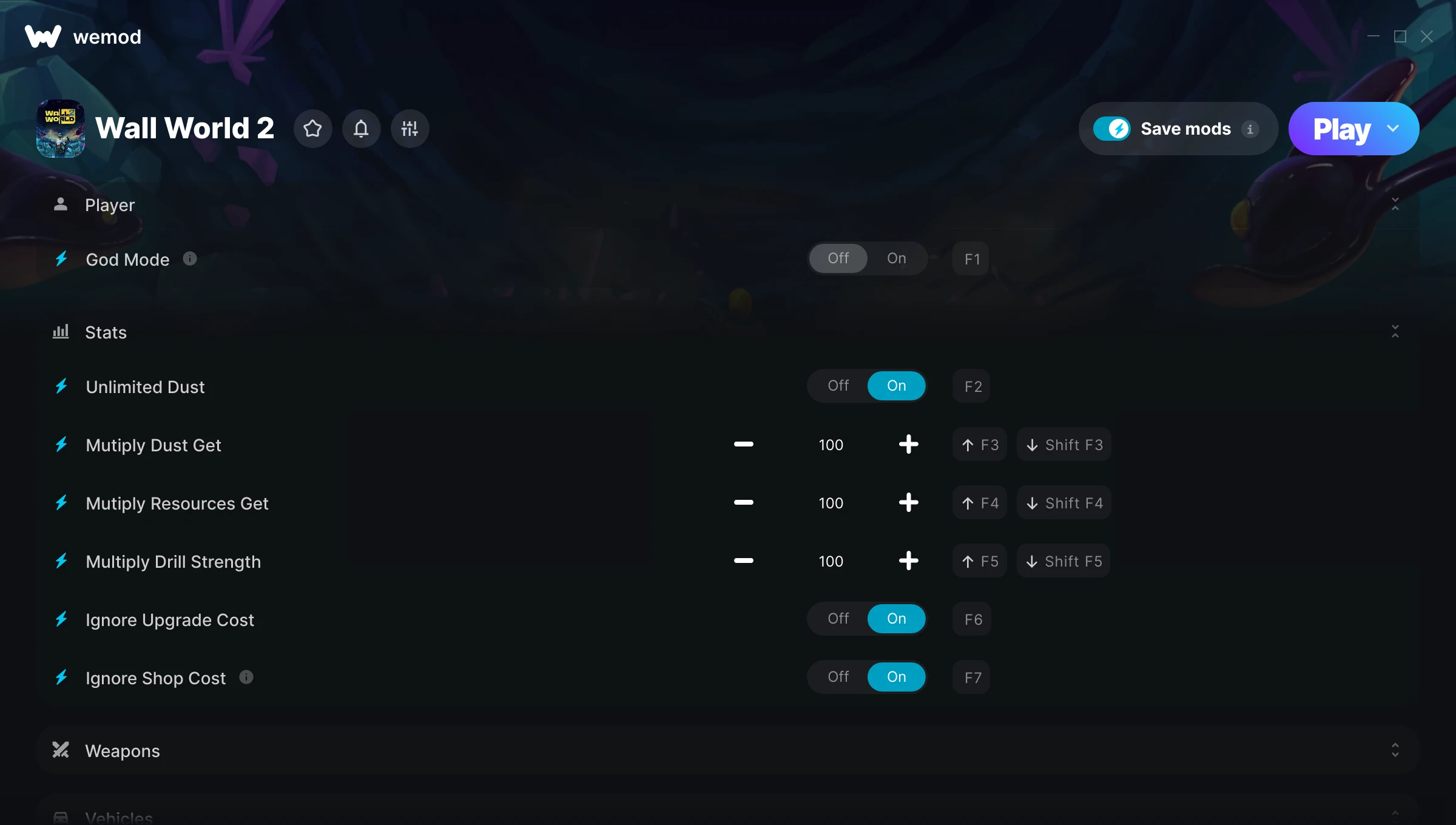 Thanks so much. Wall World 2 was a bit too tedious and this mod really let me take some of the frustration out of the heavy grind.