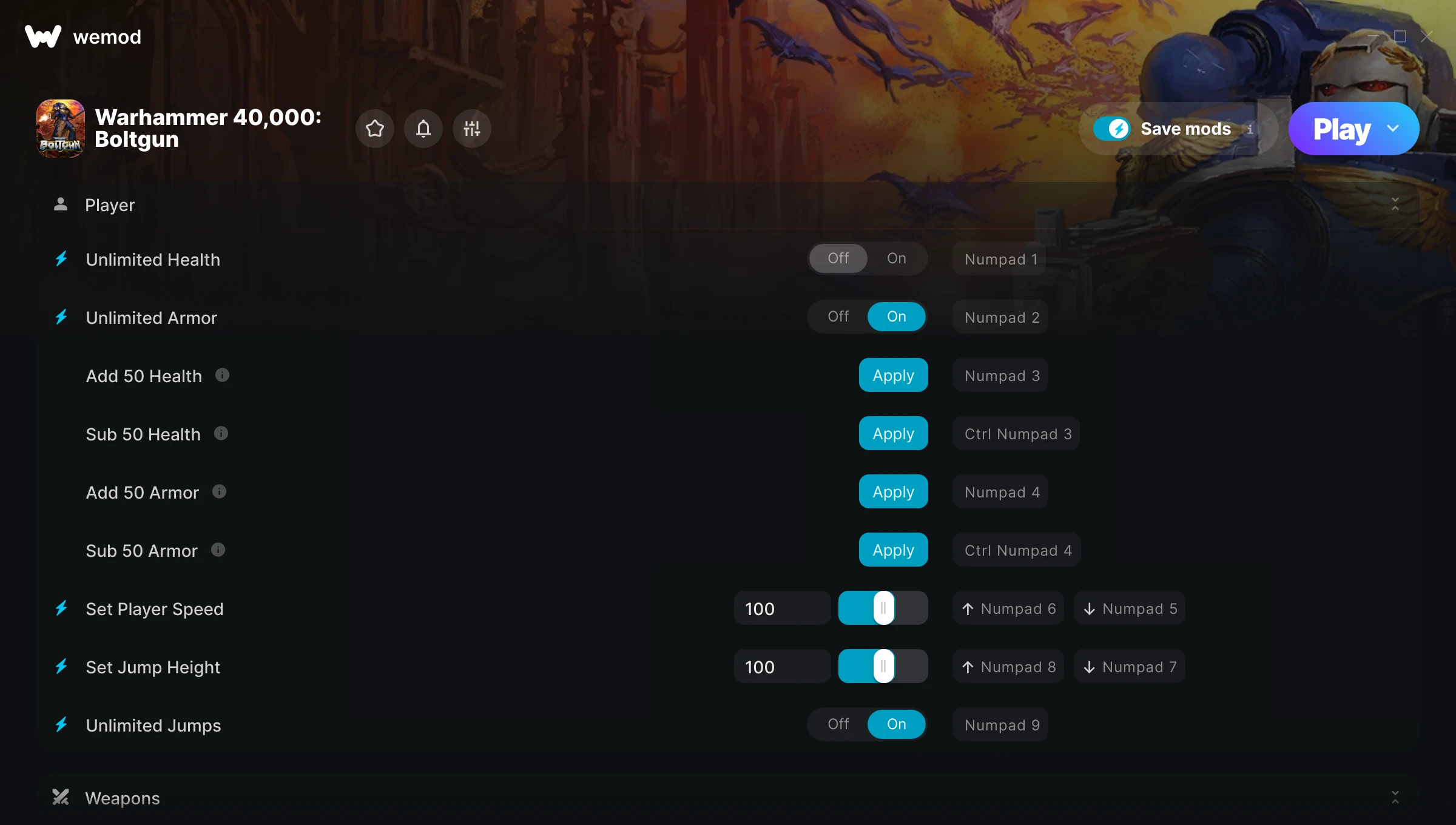 85MB Windows ...or visit us on your PC to download the app Get Unlimited Health, Unlimited Armor & 11 other mods for Warhammer 40,000: Boltgun with WeMod