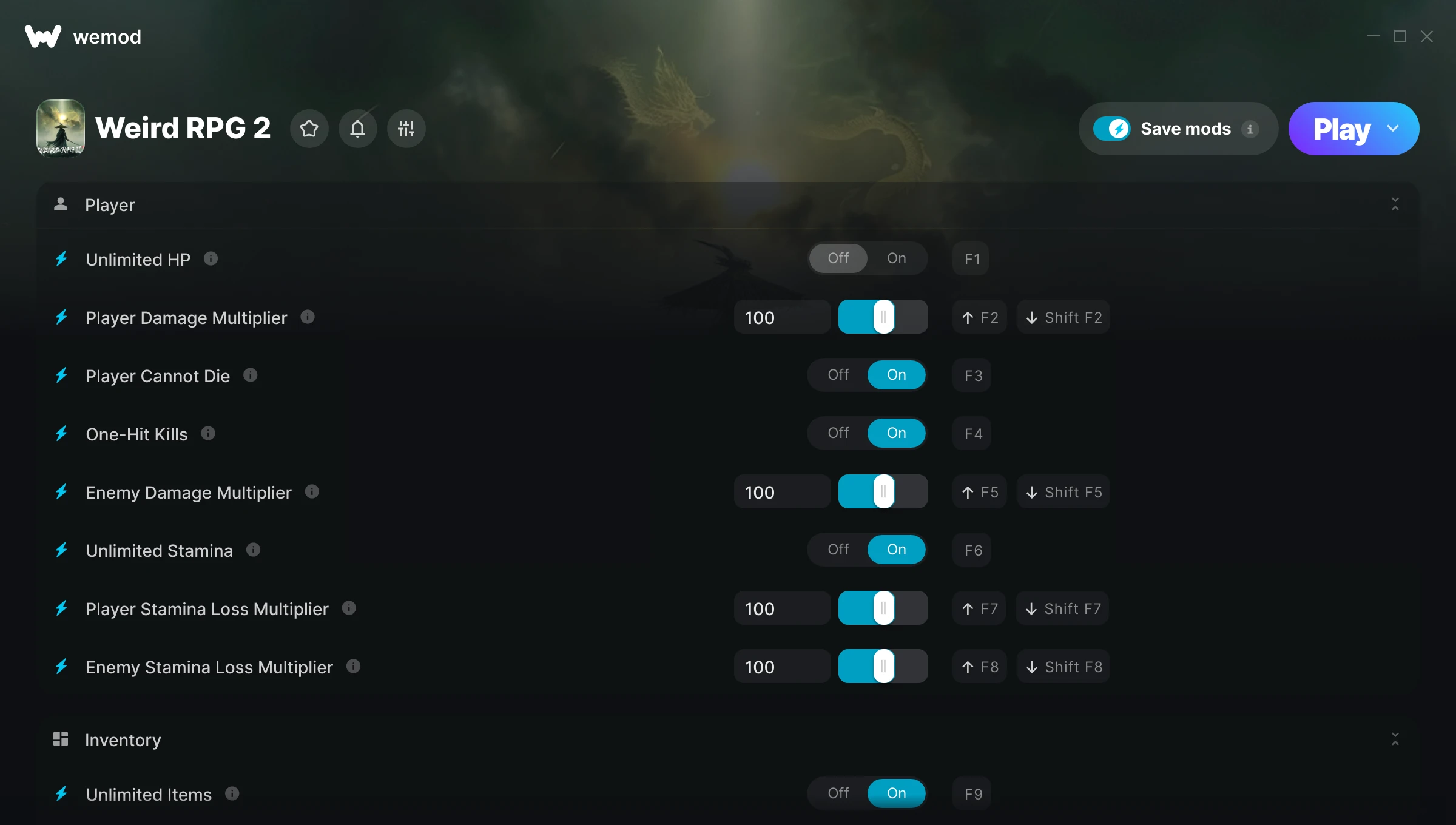 How do I use the cheats in Weird RPG 2?WeMod will safely display all of the games on your PC. Open a game from the list and simply press play. After the game loads and once you’re in-game, you can start enabling different cheats!Will this work with my game version?WeMod uses advanced technology to detect the game version you’re running and will let you know if it’s supported. If it’s not, you will still have the option of giving it a try or requesting an update!