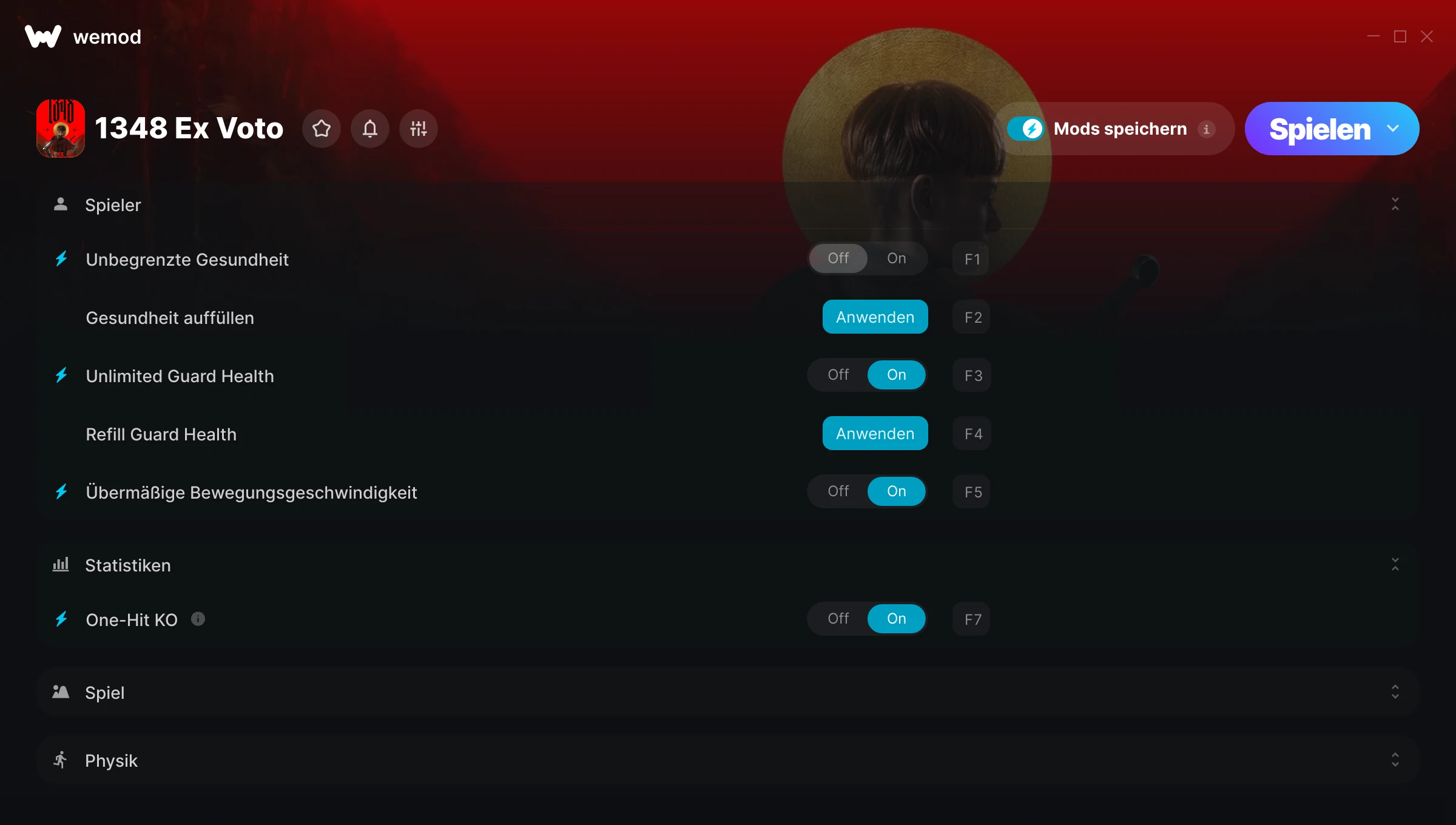 WeMod zeigt alle Spiele sicher auf deinem PC an. Öffne ein Spiel aus der Liste und drücke einfach auf die Spieltaste. Nach dem Spiel geladen wird und sobald du im Spiel bist, kannst du verschiedene Cheats aktivieren!