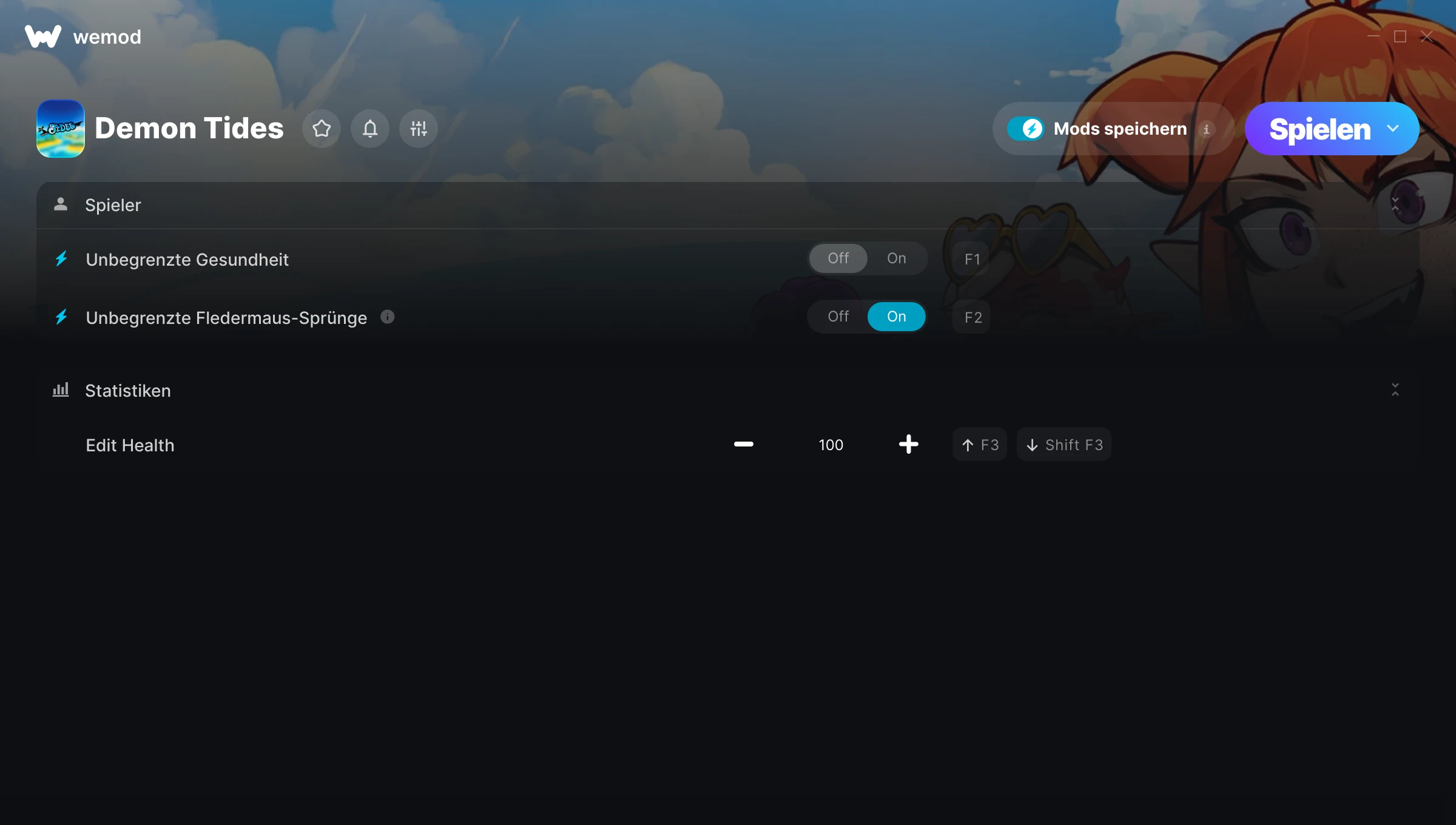 85MB Windows ...oder besuche uns auf deinem PC, um die App herunterzuladen Hole dir Unbegrenzte Gesundheit, Unbegrenzte Fledermaus-Sprünge & 1 anderer Mod for Demon Tides with WeMod