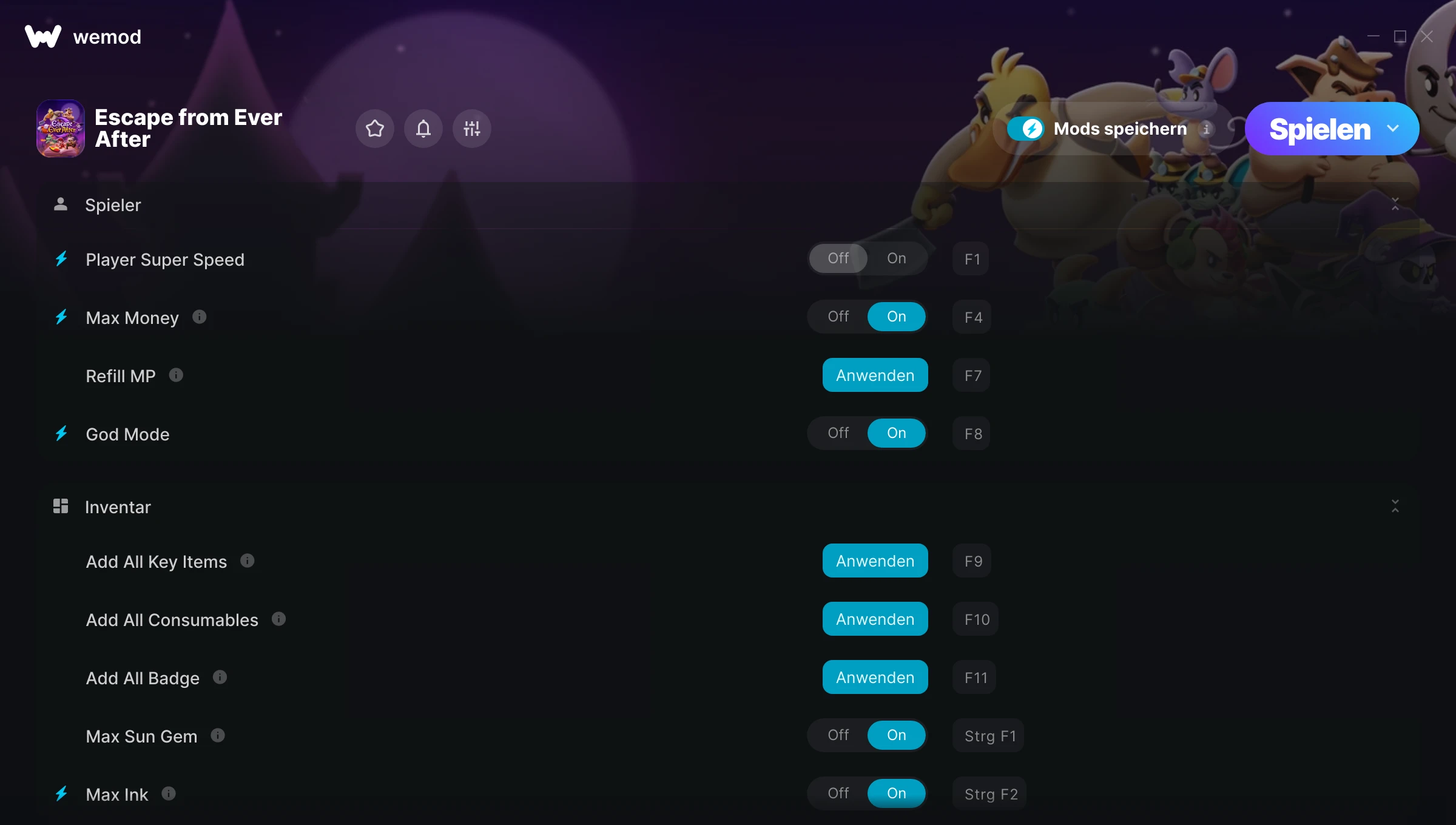 Wie verwende ich die Cheats in Escape from Ever After?