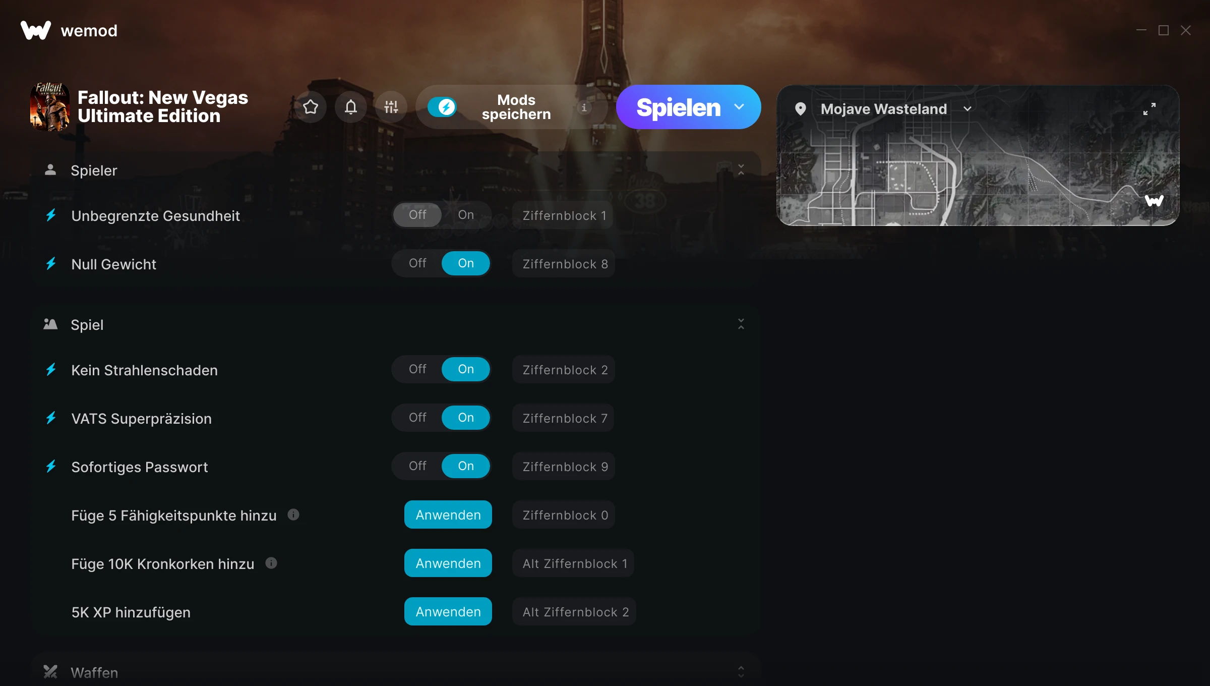 mods work, the game did crash, but that honestly is probably new vegas's fault not WeMod. Nice to have some more pocket change.