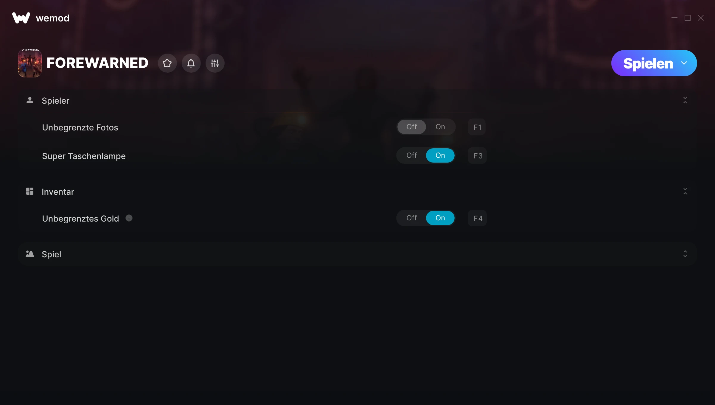 Erfahre mehrWeMod ist immer sicher und immer frei wegen unserer Gemeinschaft von Millionen von Spielern auf der ganzen Welt. Wir werden zu von WeMod Pro-Abonnenten unterstützt. Schau dir unsere Bewertungen auf Trustpilot an.