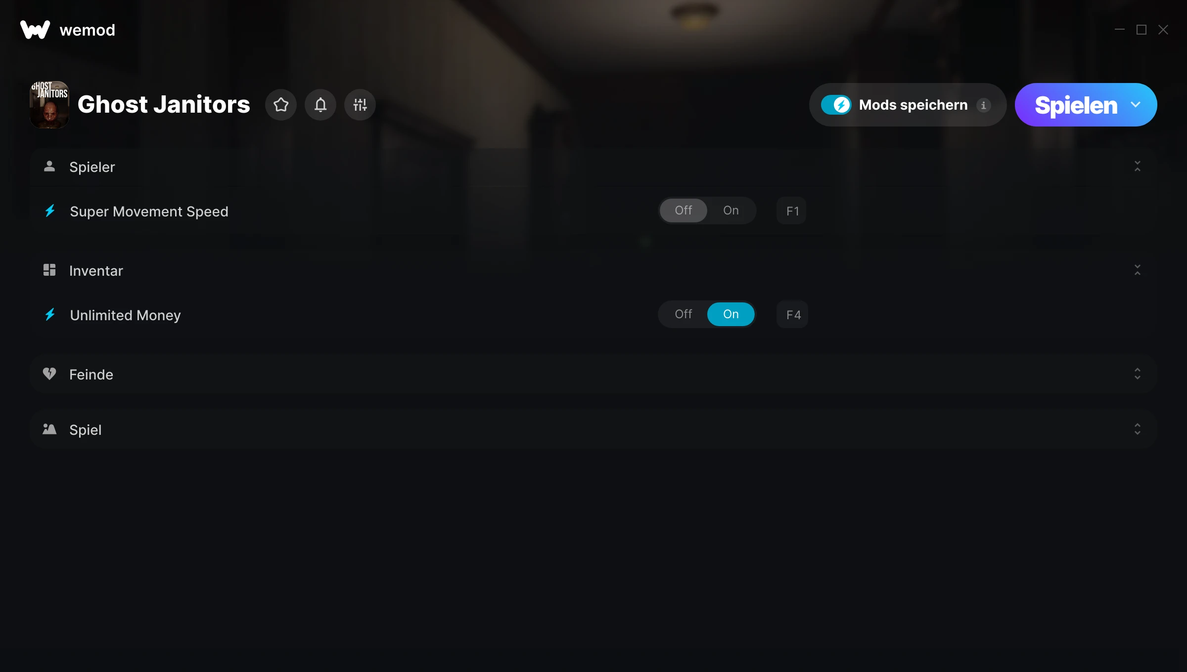 85MB Windows ...oder besuche uns auf deinem PC, um die App herunterzuladen Hole dir Übermäßige Bewegungsgeschwindigkeit, Gehgeschwindigkeitsmultiplikator & 8 andere Mods for Ghost Janitors with WeMod