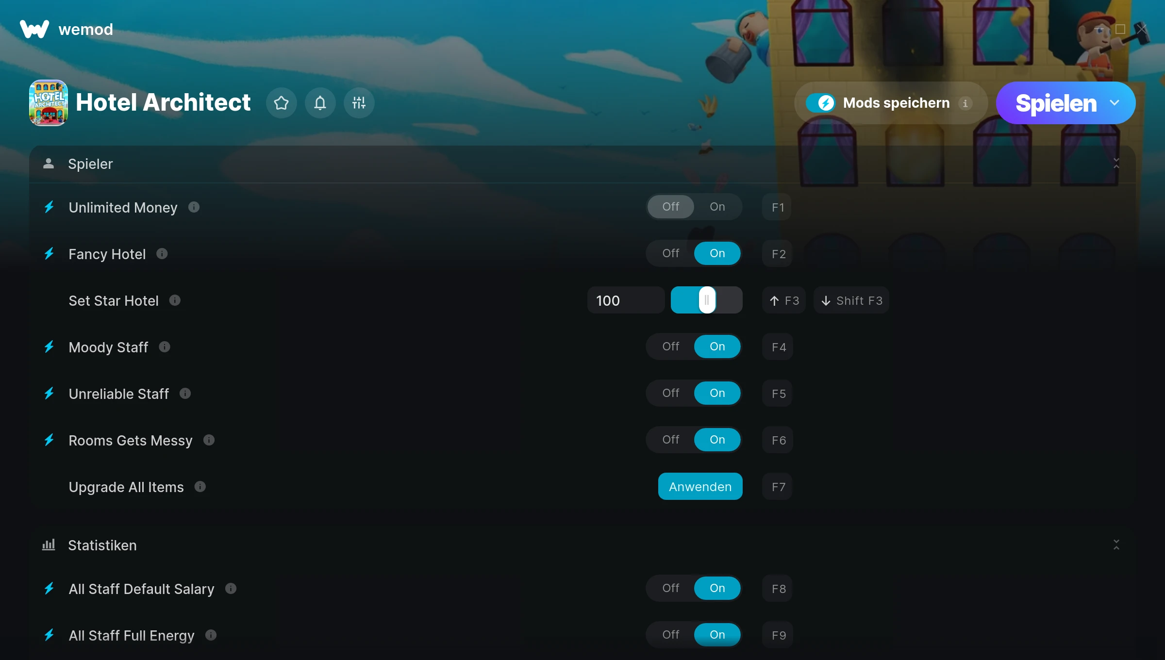 Wie verwende ich die Cheats in Hotel Architect?
