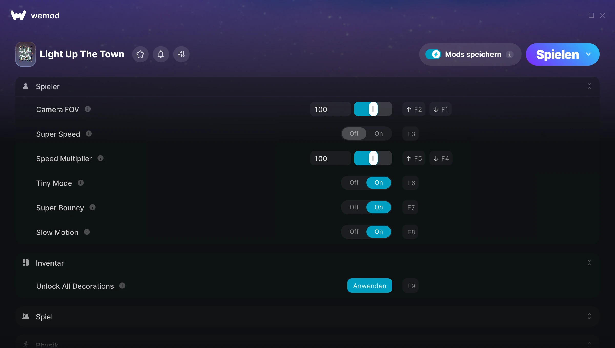 85MB Windows ...oder besuche uns auf deinem PC, um die App herunterzuladen Hole dir Kamera FOV, Schnellere Bewegung & 9 andere Mods for Light Up The Town with WeMod