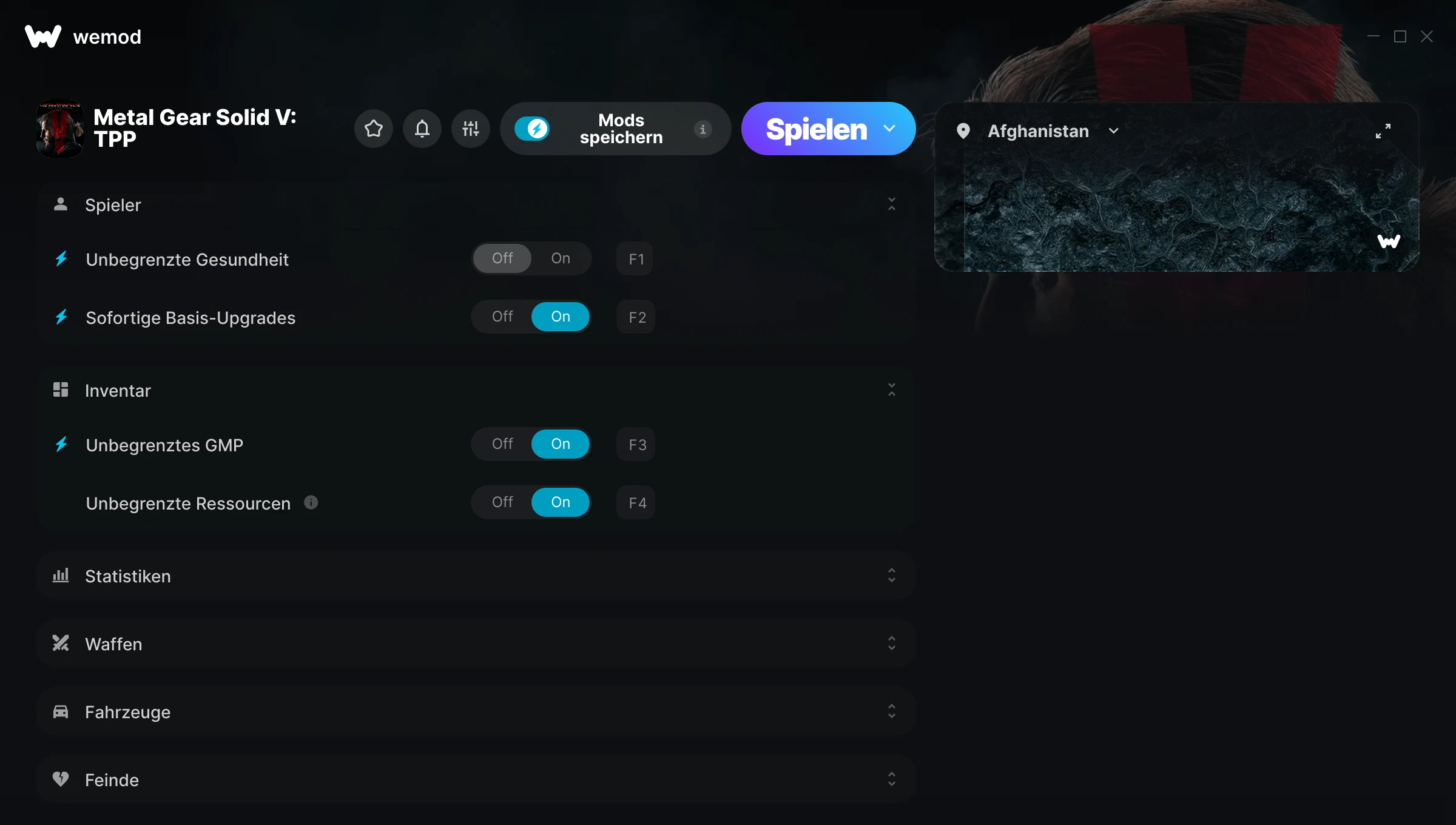 as of 04/23/2021 playing MGSV TPP Definitive Edition all the cheats work good, even though you get a "your game verision might work with cheats" message. thanks. keep it up! Wemod rocks!!