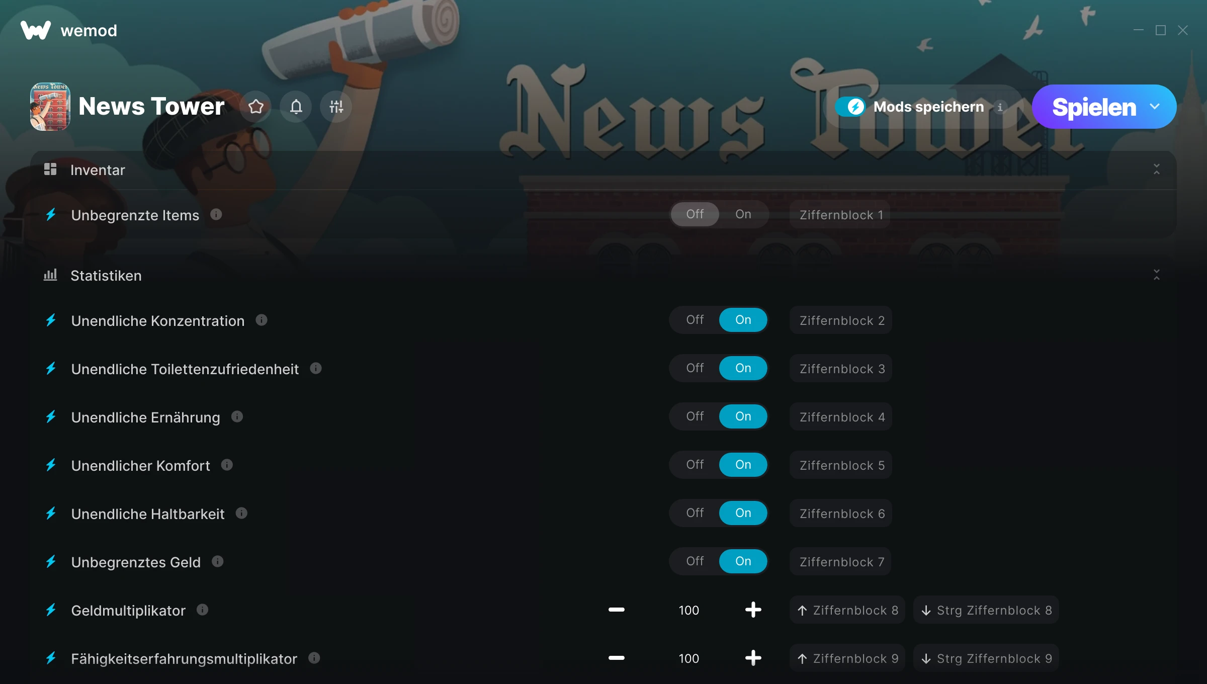 Erfahre mehrWeMod ist immer sicher und immer frei wegen unserer Gemeinschaft von Millionen von Spielern auf der ganzen Welt. Wir werden zu von WeMod Pro-Abonnenten unterstützt. Schau dir unsere Bewertungen auf Trustpilot an.