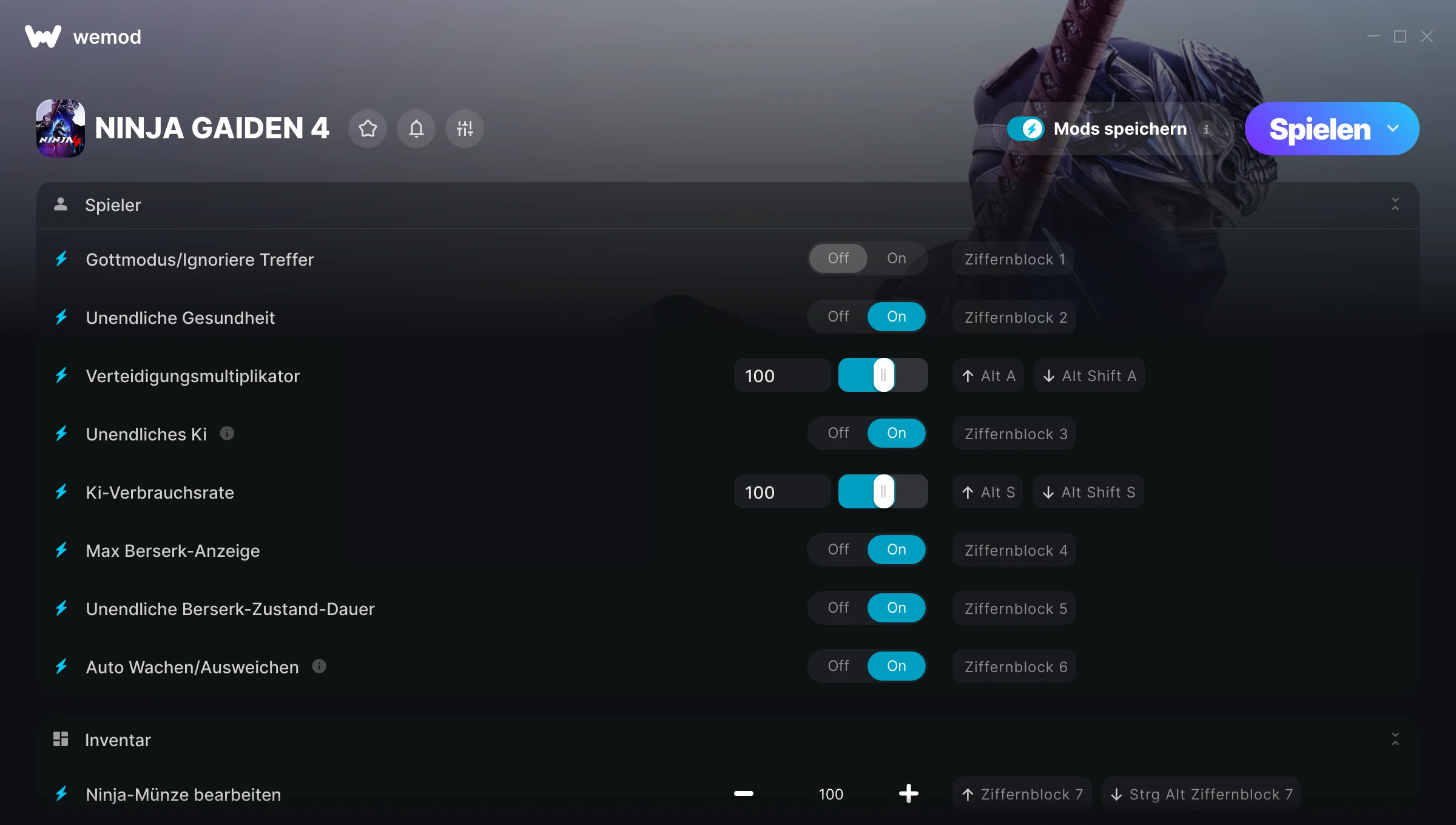 85MB Windows ...oder besuche uns auf deinem PC, um die App herunterzuladen Hole dir Gottmodus/Ignoriere Treffer, Unendliche Gesundheit & 16 andere Mods for NINJA GAIDEN 4 with WeMod