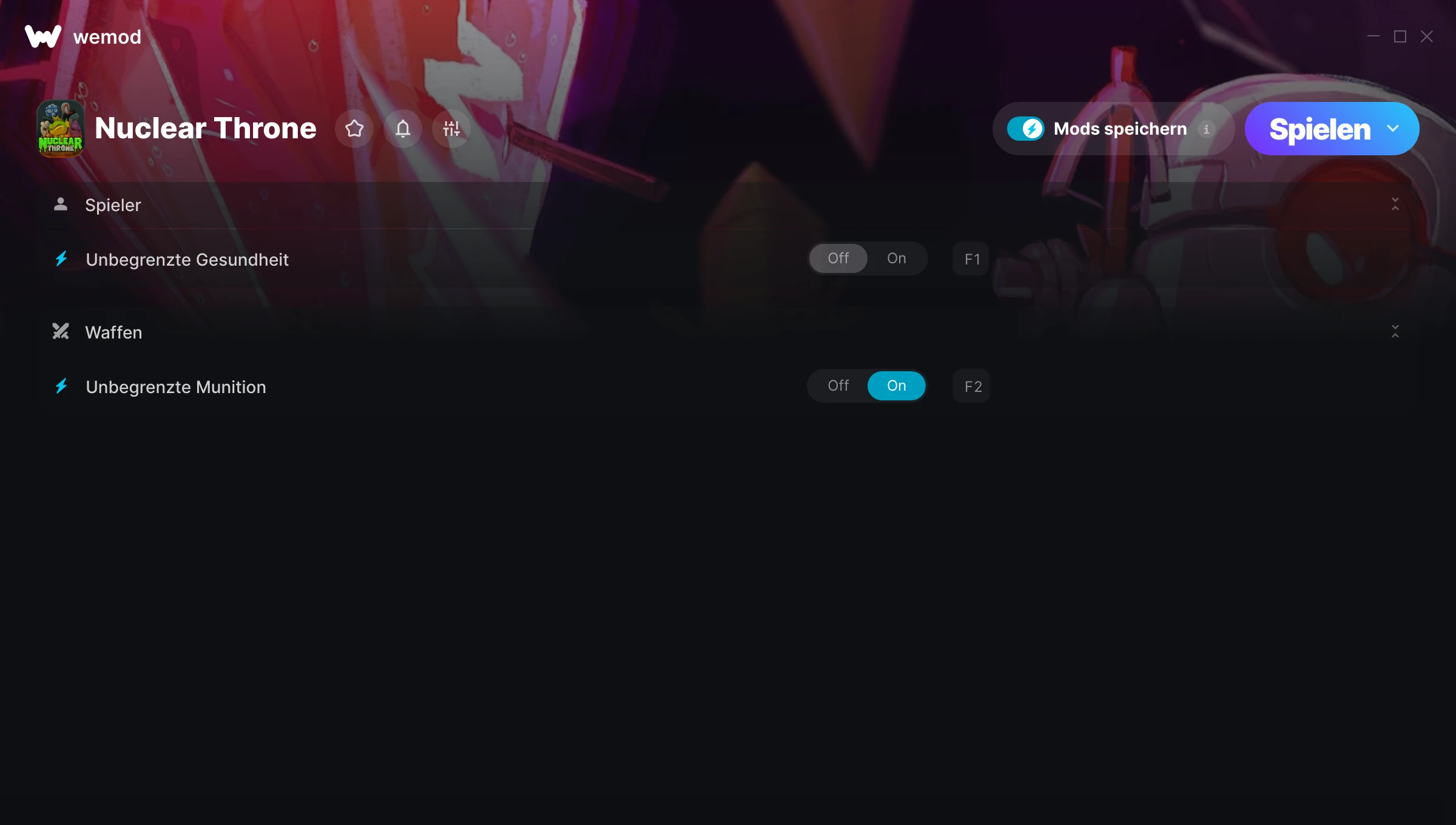 WeMod zeigt alle Spiele sicher auf deinem PC an. Öffne ein Spiel aus der Liste und drücke einfach auf die Spieltaste. Nach dem Spiel geladen wird und sobald du im Spiel bist, kannst du verschiedene Cheats aktivieren!