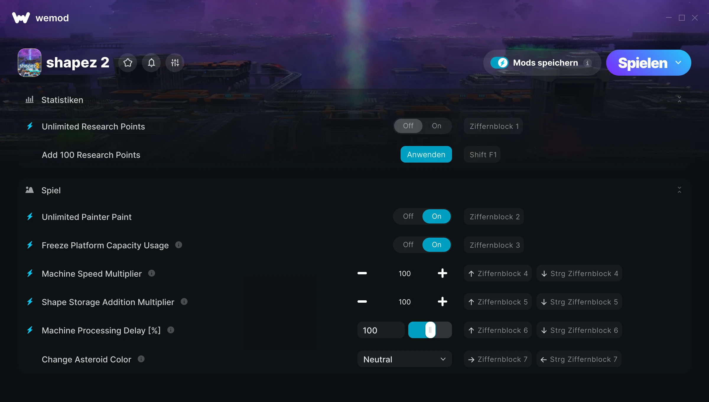 85MB Windows ...oder besuche uns auf deinem PC, um die App herunterzuladen Hole dir Unbegrenzte Forschungspunkte, 100 Forschungspunkte hinzufügen & 6 andere Mods for shapez 2 with WeMod
