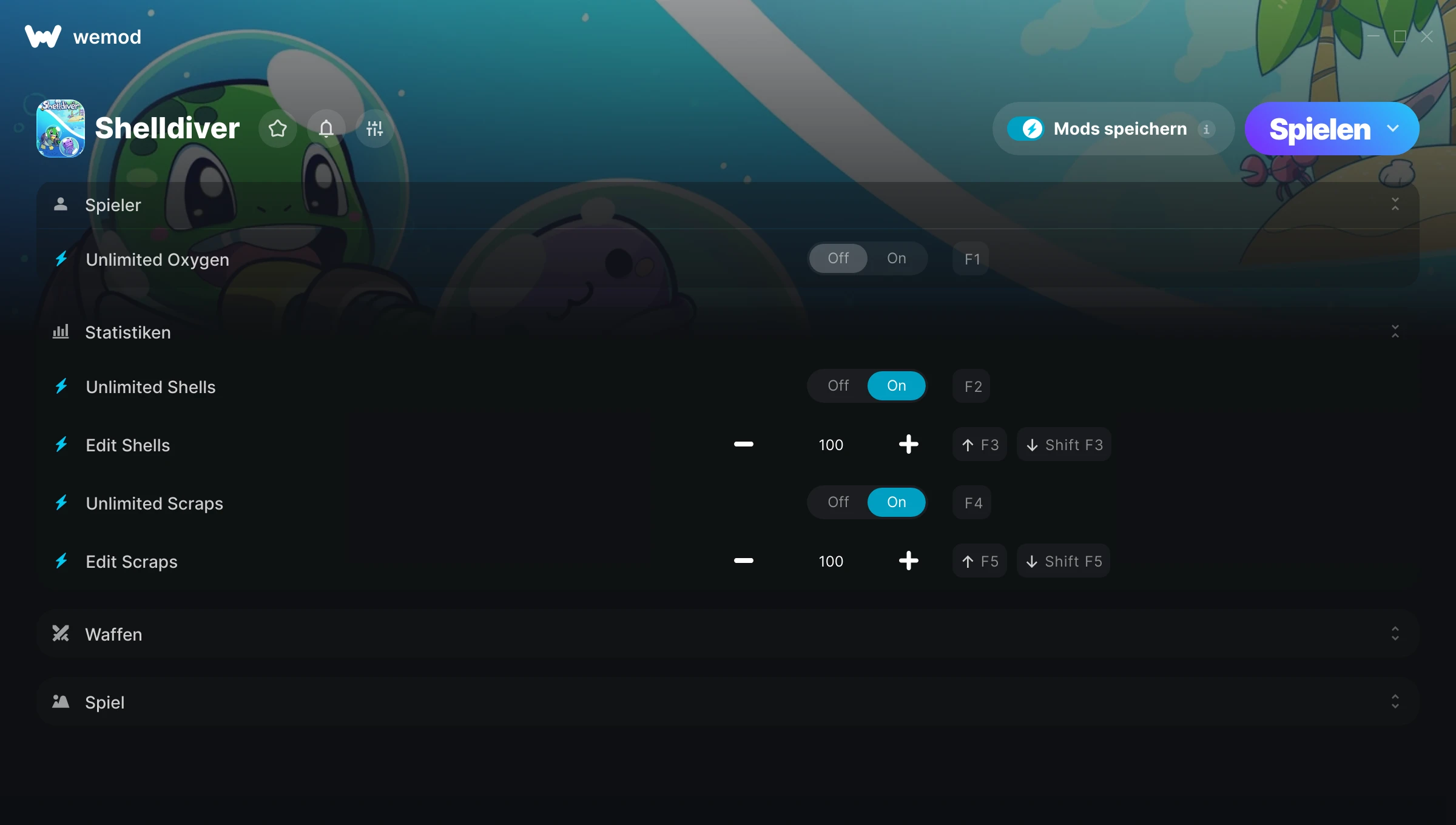 85MB Windows ...oder besuche uns auf deinem PC, um die App herunterzuladen Hole dir Unbegrenzter Sauerstoff, Unbegrenzte Shells & 5 andere Mods for Shelldiver with WeMod