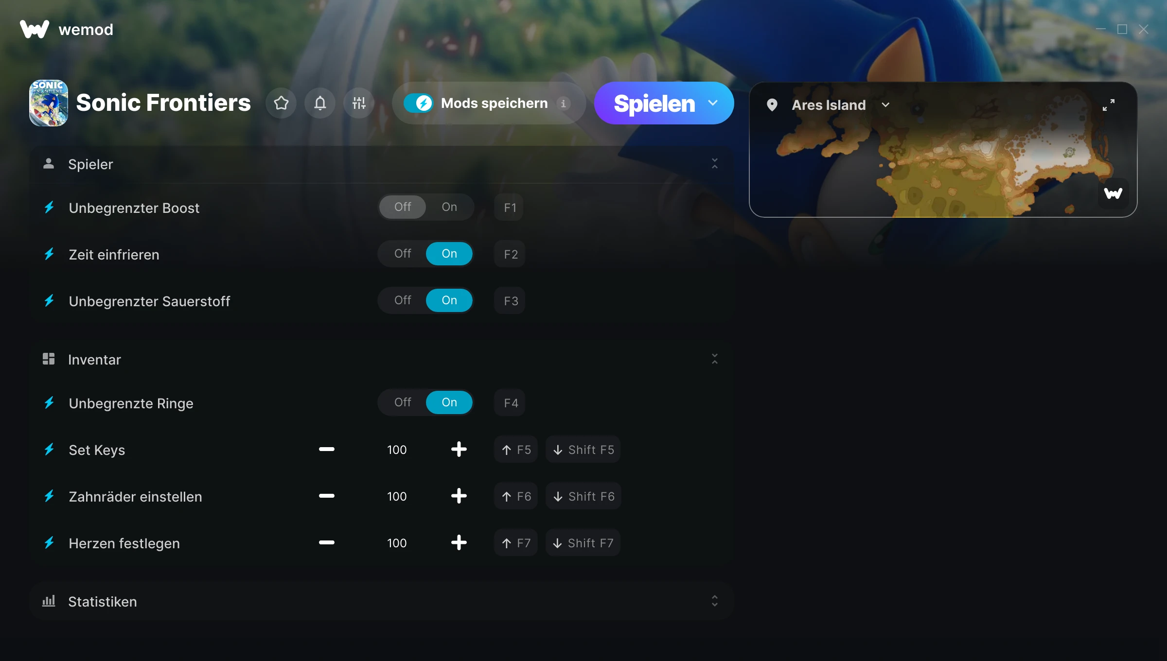 Wie verwende ich die Cheats in Sonic Frontiers?