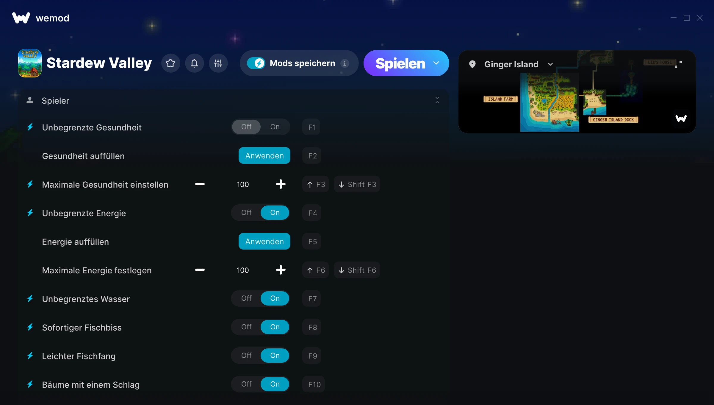 Thanks for making this! Just a suggestion if you want to add something, make it so that you can put an ID for an item in somewhere and then you get that item, and that unlimited items gives 999 instead of 99, and that when you use unlimited health the bar doesn't go all the way up, and that your tools get auto upgraded to iridium with best enchants and forges. Also make it so you can skip the whole story line and you have access to Ginger Island and the Desert right away. Also auto-fill wallet mod and auto-perfection would be nice. Thanks for reading if you get to the end of this!!!