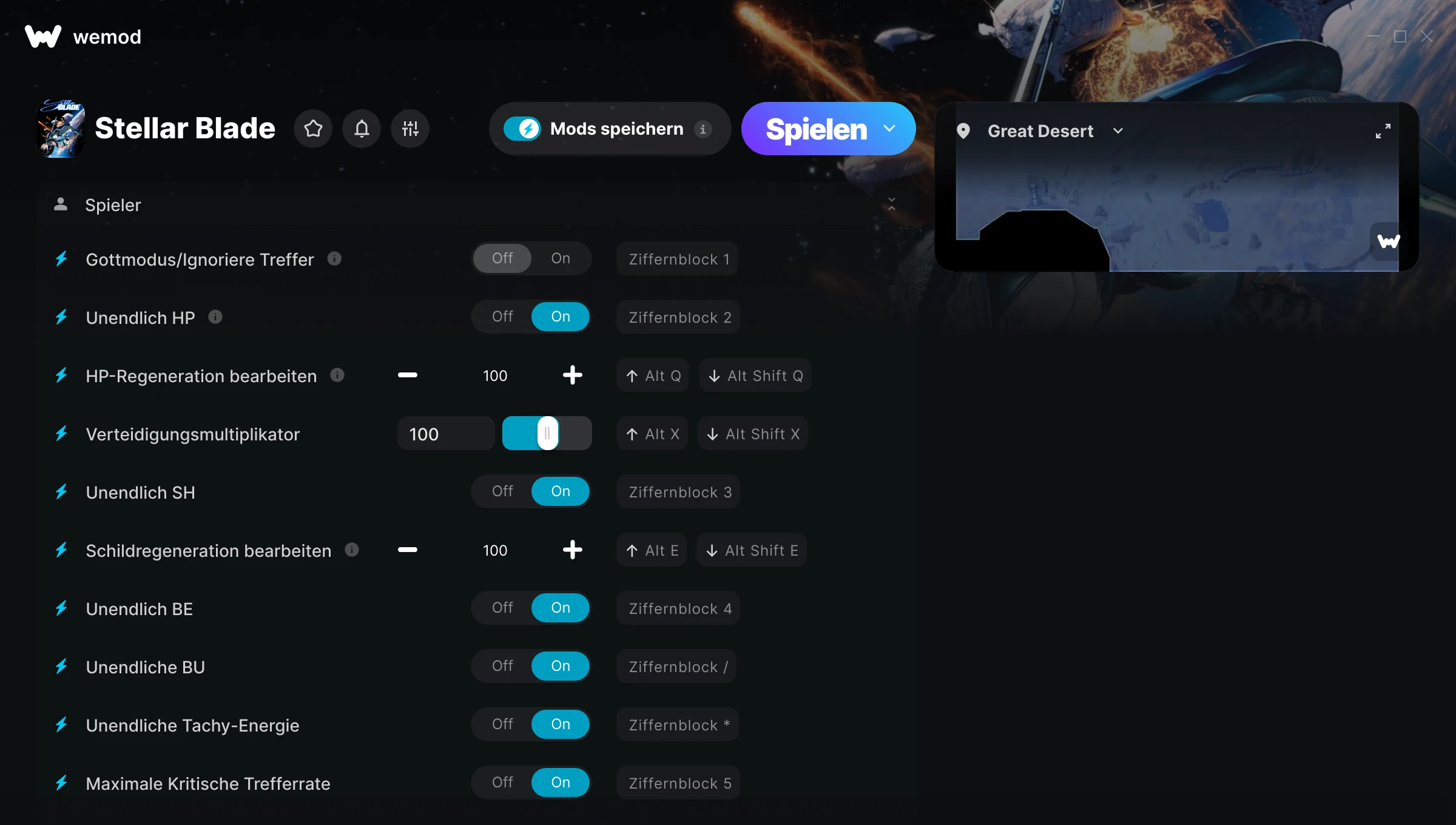 wow it help a lot in battle, the mods solve the battle problem that stellar blade have, its like make for 1 v1 boss fight only ,when you run into massive number enemy it will have difficult to aim and hit... Thanks to WEMOD now can enjoy the game more fun.