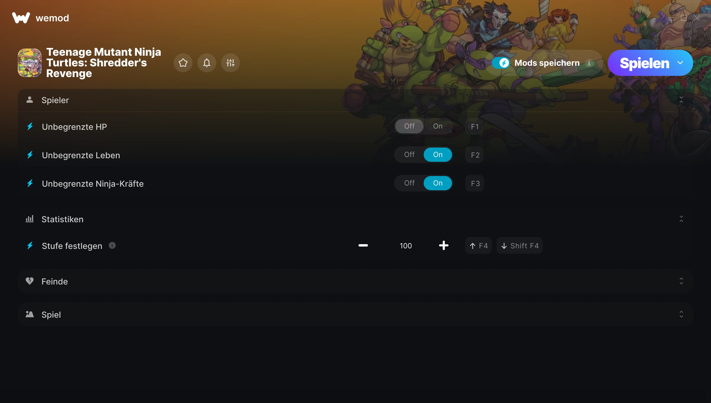 I love the Game Speed how you can turn it up and be invincible,Very Fun.Thank You Great job.I am going to buy TMNT Cowabunga Collection and I hope you guys have some mods for it also.Thanks again for making this game so much fun.
