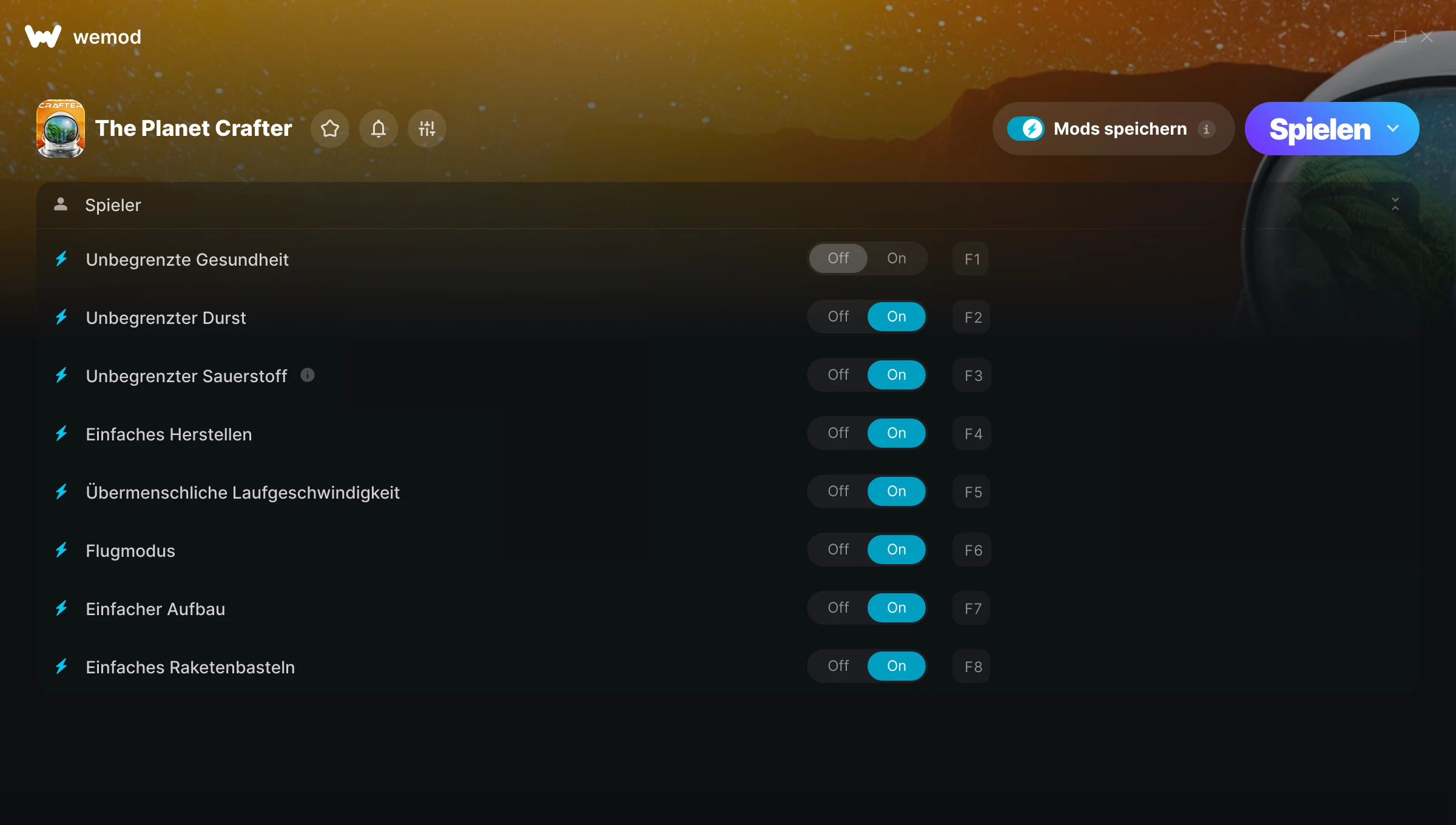 The WeMod tools work great, but the only problem is the lack of settings. Maybe one to add would be either a multiplier to certain stats or terriformation, or add buttons to where players could add/subtract stats.