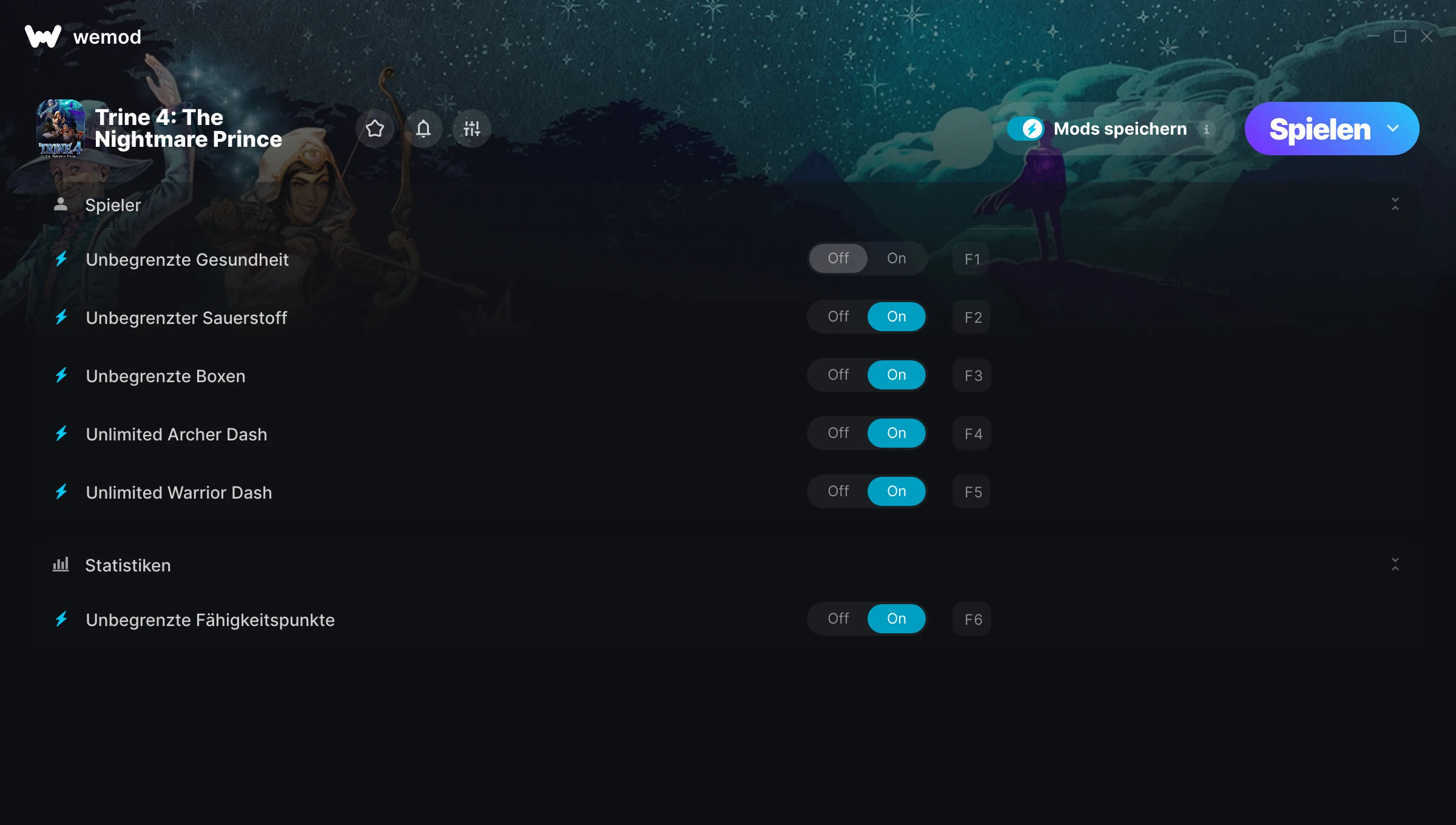 Erfahre mehrWeMod ist immer sicher und immer frei wegen unserer Gemeinschaft von Millionen von Spielern auf der ganzen Welt. Wir werden zu von WeMod Pro-Abonnenten unterstützt. Schau dir unsere Bewertungen auf Trustpilot an.