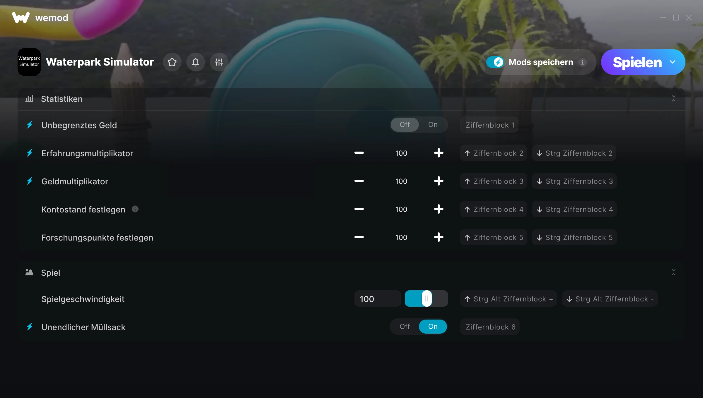 85MB Windows ...oder besuche uns auf deinem PC, um die App herunterzuladen Hole dir Unbegrenztes Geld, Erfahrungsmultiplikator & 5 andere Mods for Waterpark Simulator with WeMod