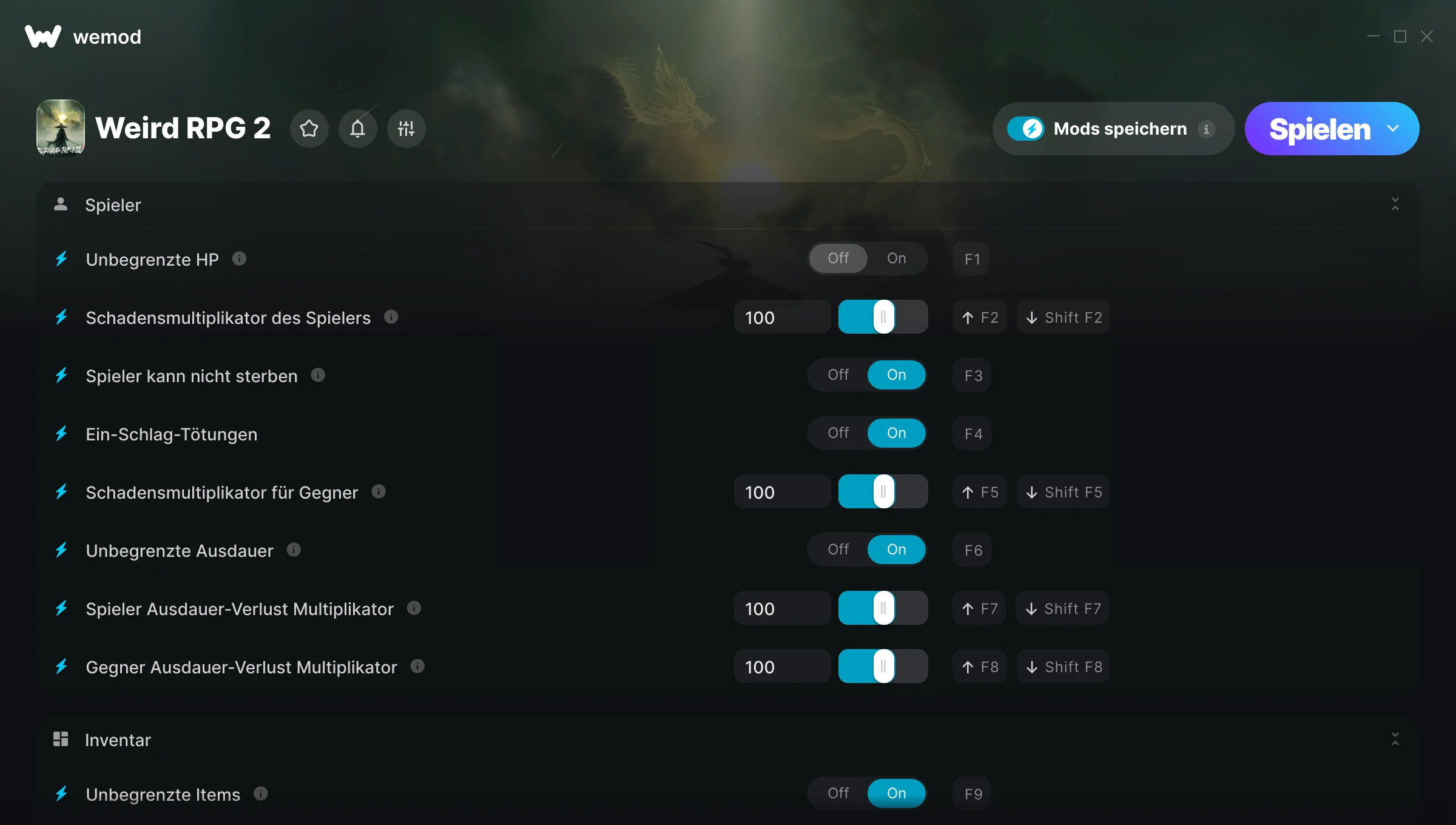 Erfahre mehrWeMod ist immer sicher und immer frei wegen unserer Gemeinschaft von Millionen von Spielern auf der ganzen Welt. Wir werden zu von WeMod Pro-Abonnenten unterstützt. Schau dir unsere Bewertungen auf Trustpilot an.
