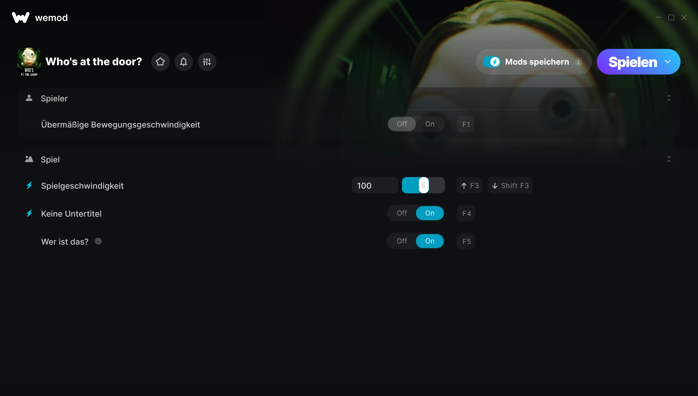 85MB Windows ...oder besuche uns auf deinem PC, um die App herunterzuladen Hole dir Übermäßige Bewegungsgeschwindigkeit, Bewegungsgeschwindigkeitsmultiplikator & 3 andere Mods for Who's at the door? with WeMod