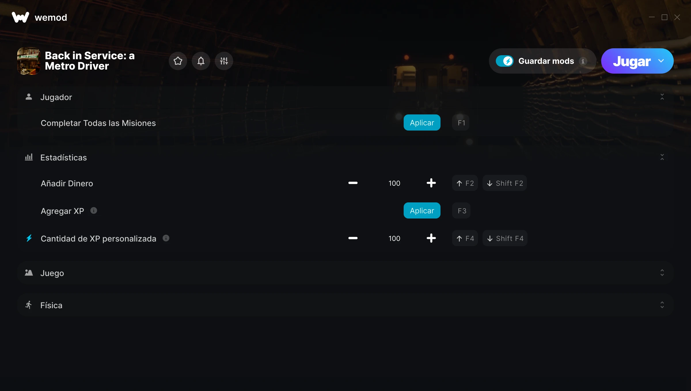 ¿Cómo puedo usar las trampas para Back in Service: a Metro Driver?WeMod mostrará todos los juegos en tu PC de forma segura. Abre un juego de la lista y simplemente pulsa jugar. Cuando el juego se haya cargado y estés in-game, podrás empezar a activar las diferentes trampas.¿Funcionará esto con mi versión del juego?WeMod utiliza tecnología avanzada para detectar la versión del juego que tienes y te informará si es compatible. Si no es así, todavía tendrás la opción de probarlo o solicitar una actualización.