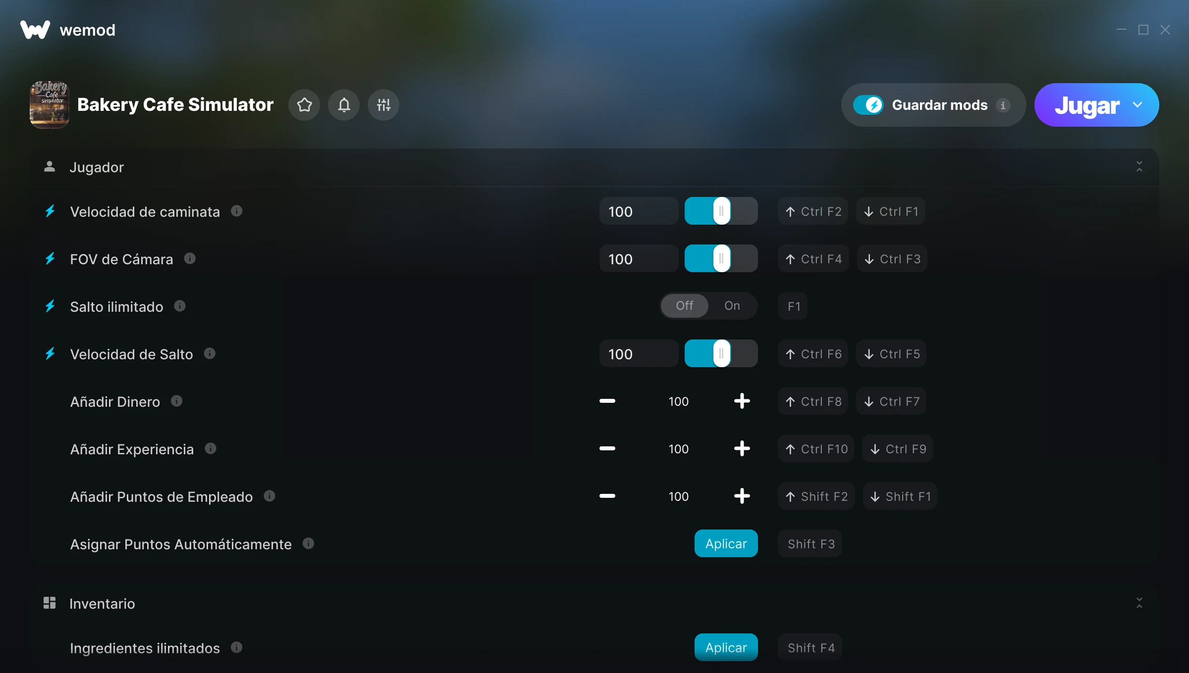 ¿Cómo puedo usar las trampas para Bakery Cafe Simulator?WeMod mostrará todos los juegos en tu PC de forma segura. Abre un juego de la lista y simplemente pulsa jugar. Cuando el juego se haya cargado y estés in-game, podrás empezar a activar las diferentes trampas.¿Funcionará esto con mi versión del juego?WeMod utiliza tecnología avanzada para detectar la versión del juego que tienes y te informará si es compatible. Si no es así, todavía tendrás la opción de probarlo o solicitar una actualización.