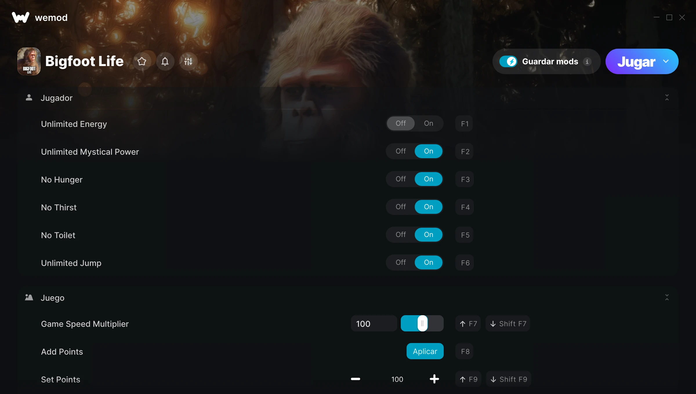 ¿Cómo puedo usar las trampas para Bigfoot Life?WeMod mostrará todos los juegos en tu PC de forma segura. Abre un juego de la lista y simplemente pulsa jugar. Cuando el juego se haya cargado y estés in-game, podrás empezar a activar las diferentes trampas.¿Funcionará esto con mi versión del juego?WeMod utiliza tecnología avanzada para detectar la versión del juego que tienes y te informará si es compatible. Si no es así, todavía tendrás la opción de probarlo o solicitar una actualización.