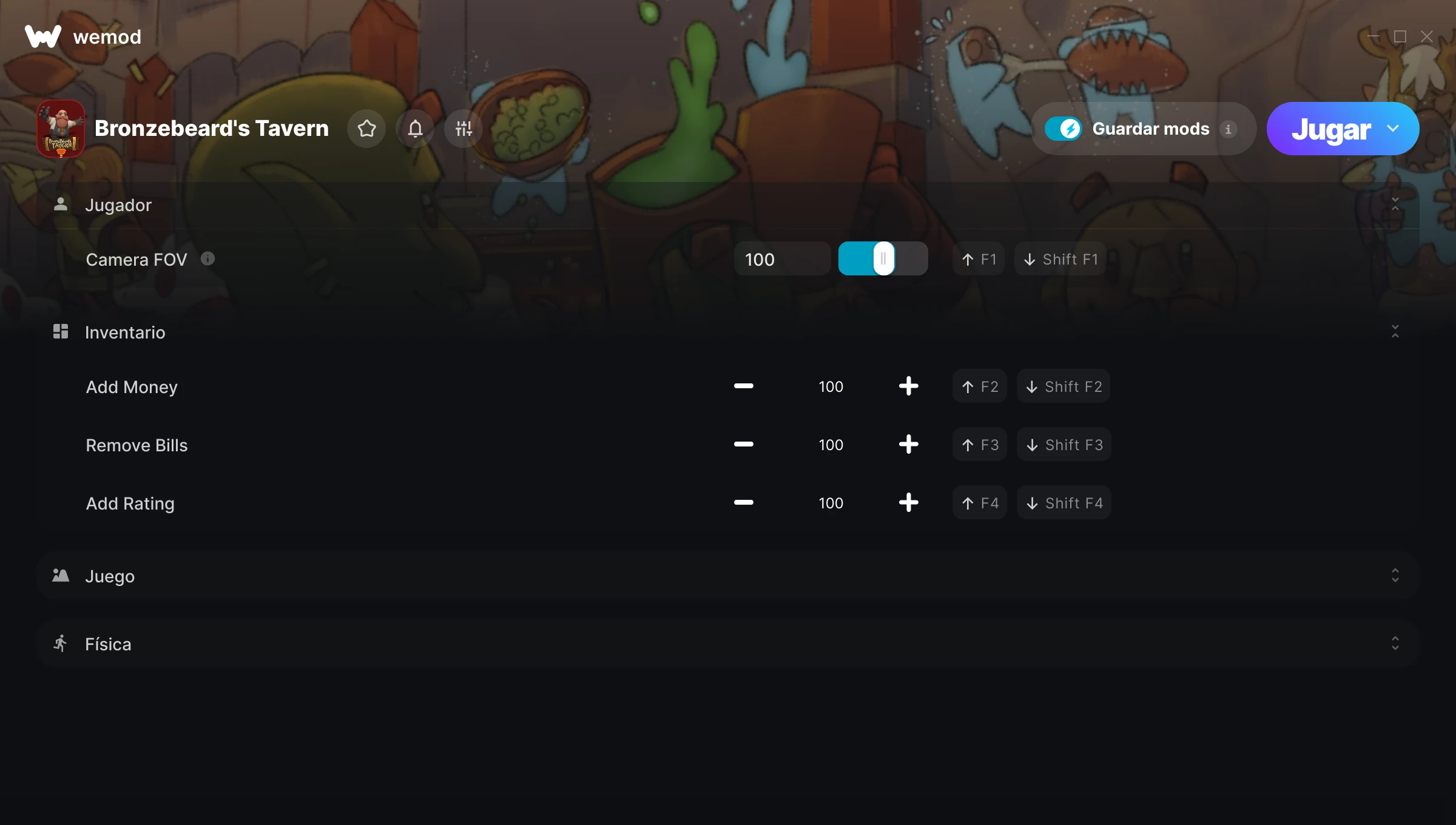 ¿Cómo puedo usar las trampas para Bronzebeard's Tavern?WeMod mostrará todos los juegos en tu PC de forma segura. Abre un juego de la lista y simplemente pulsa jugar. Cuando el juego se haya cargado y estés in-game, podrás empezar a activar las diferentes trampas.¿Funcionará esto con mi versión del juego?WeMod utiliza tecnología avanzada para detectar la versión del juego que tienes y te informará si es compatible. Si no es así, todavía tendrás la opción de probarlo o solicitar una actualización.
