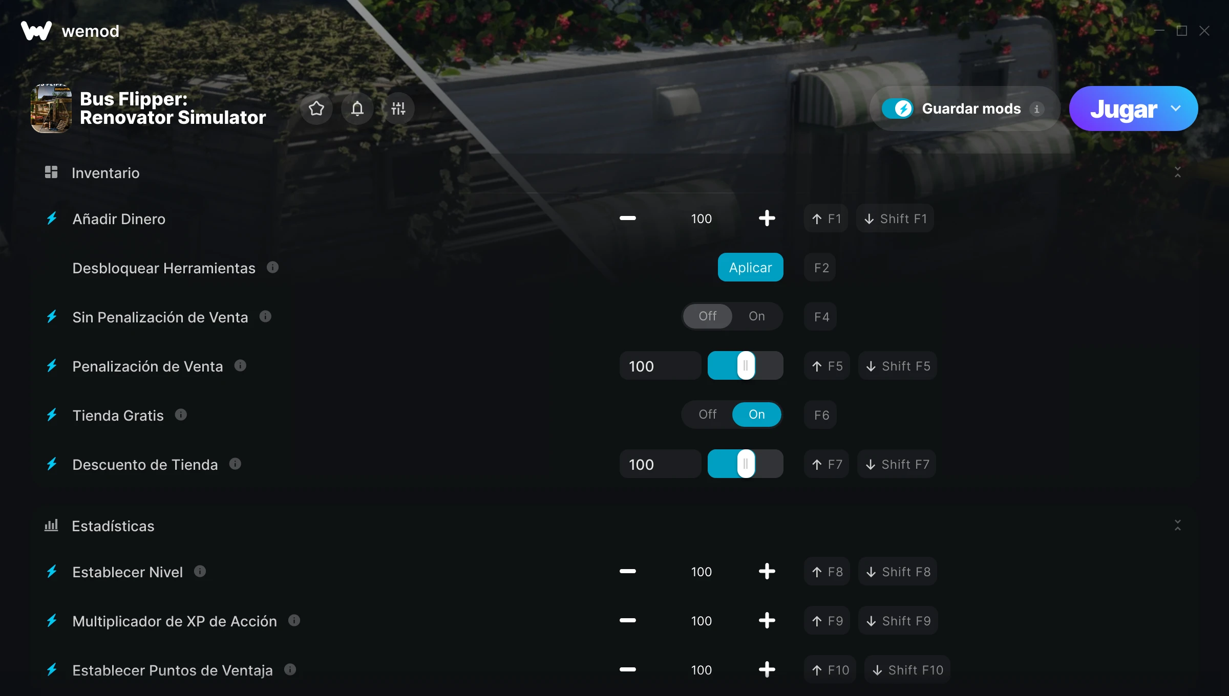 ¿Cómo puedo usar las trampas para Bus Flipper: Renovator Simulator?WeMod mostrará todos los juegos en tu PC de forma segura. Abre un juego de la lista y simplemente pulsa jugar. Cuando el juego se haya cargado y estés in-game, podrás empezar a activar las diferentes trampas.¿Funcionará esto con mi versión del juego?WeMod utiliza tecnología avanzada para detectar la versión del juego que tienes y te informará si es compatible. Si no es así, todavía tendrás la opción de probarlo o solicitar una actualización.