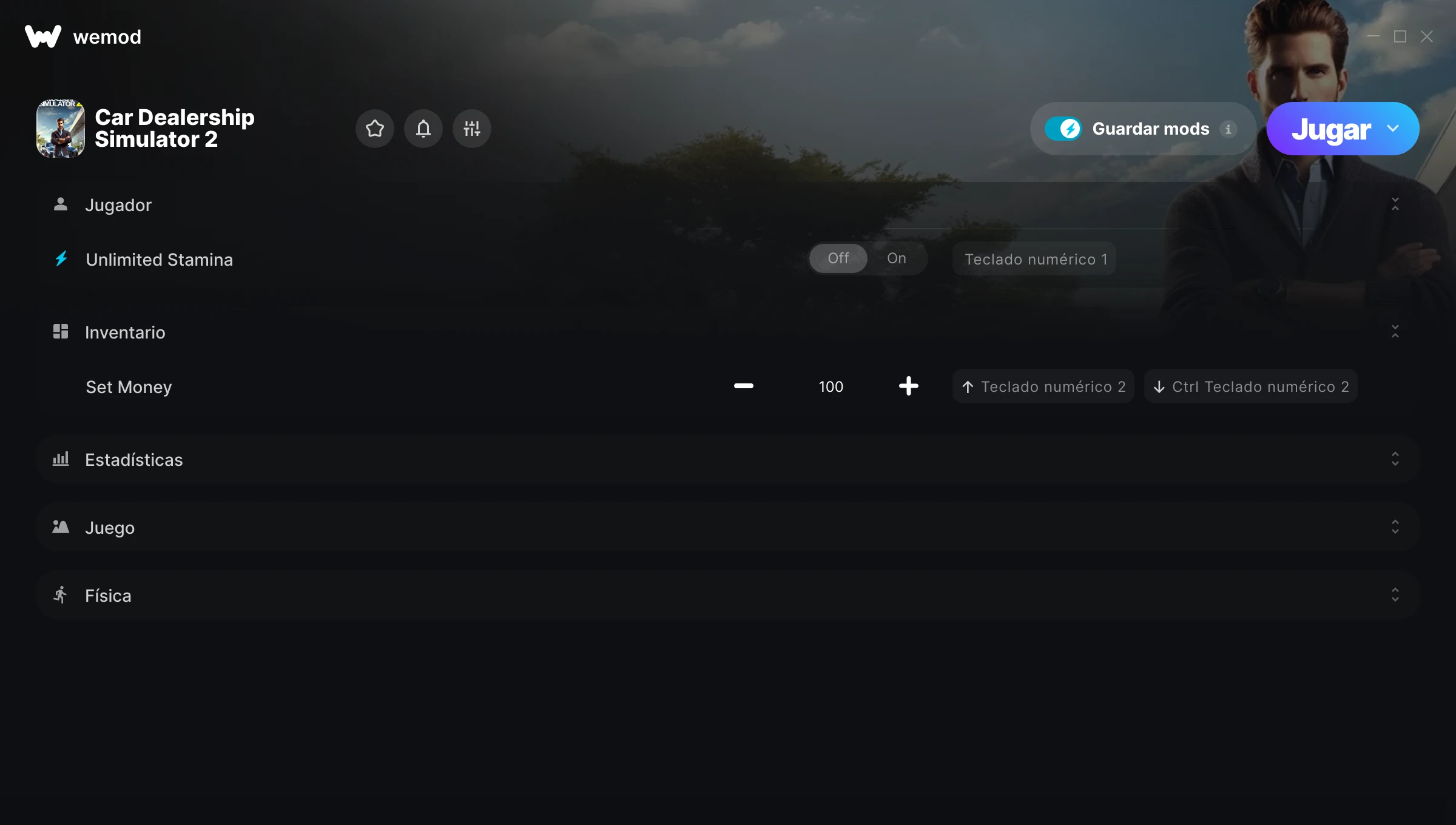 ¿Cómo puedo usar las trampas para Car Dealership Simulator 2?WeMod mostrará todos los juegos en tu PC de forma segura. Abre un juego de la lista y simplemente pulsa jugar. Cuando el juego se haya cargado y estés in-game, podrás empezar a activar las diferentes trampas.¿Funcionará esto con mi versión del juego?WeMod utiliza tecnología avanzada para detectar la versión del juego que tienes y te informará si es compatible. Si no es así, todavía tendrás la opción de probarlo o solicitar una actualización.