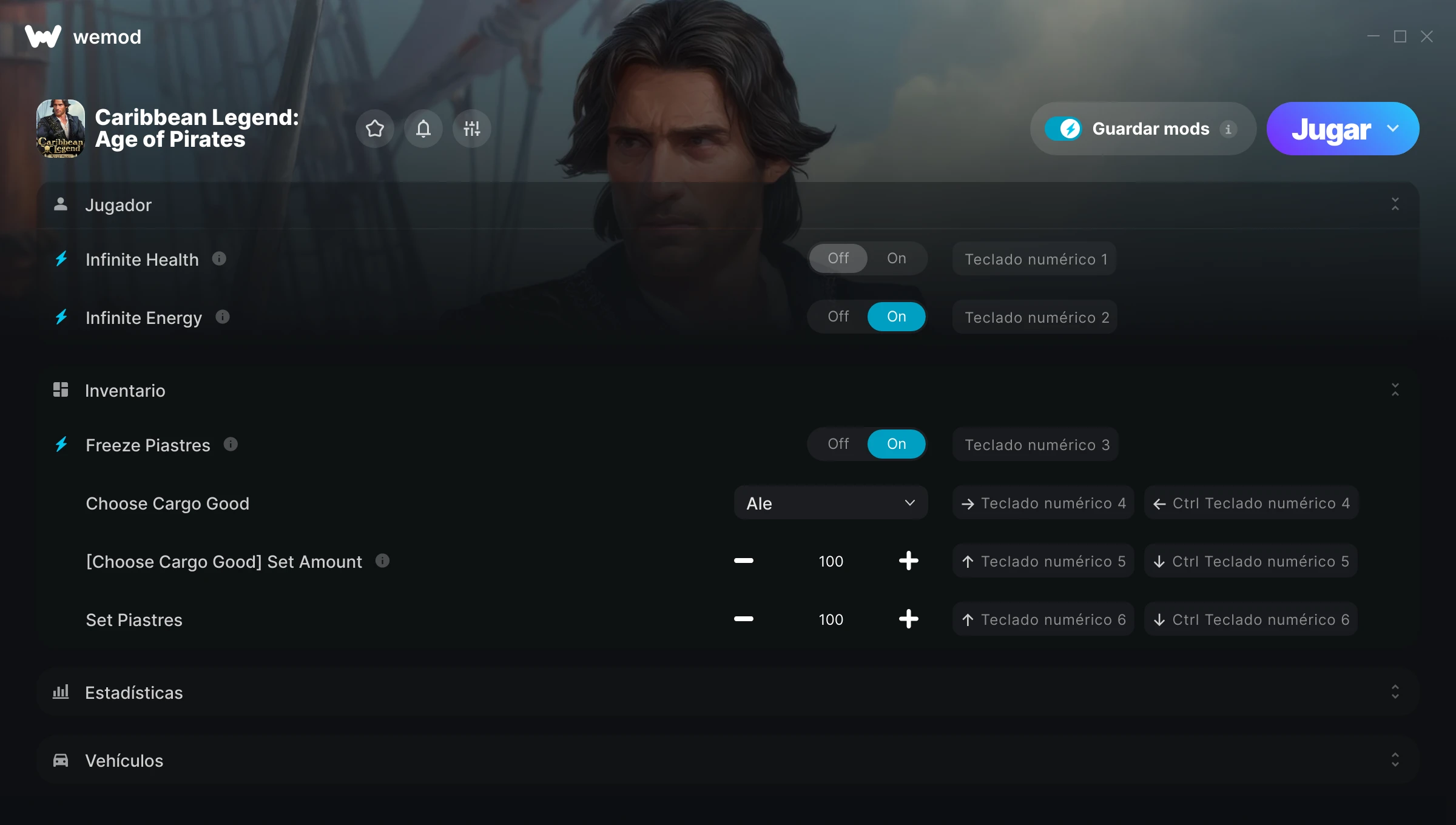 ¿Cómo puedo usar las trampas para Caribbean Legend: Age of Pirates?WeMod mostrará todos los juegos en tu PC de forma segura. Abre un juego de la lista y simplemente pulsa jugar. Cuando el juego se haya cargado y estés in-game, podrás empezar a activar las diferentes trampas.¿Funcionará esto con mi versión del juego?WeMod utiliza tecnología avanzada para detectar la versión del juego que tienes y te informará si es compatible. Si no es así, todavía tendrás la opción de probarlo o solicitar una actualización.